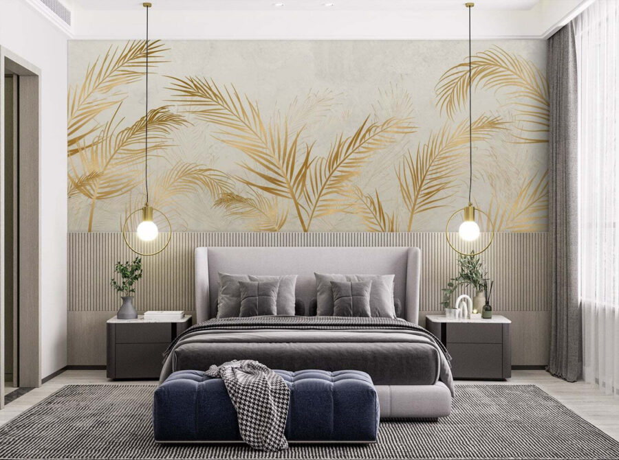 Transform your space with the “Elegant Palms in Serene Hues” wall mural. Imagine walking into a room that feels like a tropical getaway—without the hassle of sand in your shoes! The soft, calming tones of gold against a subtle backdrop invite relaxation and a touch of class. It’s like having a piece of paradise right at home.