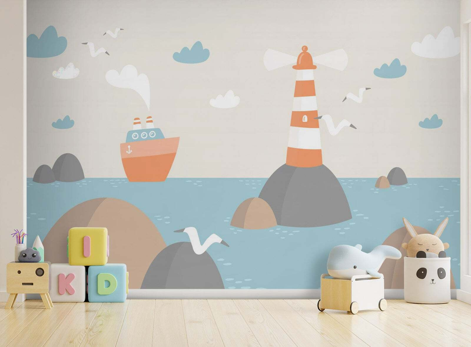 Dive into a world where every day feels like a breezy seaside adventure with this charming wall mural featuring a lighthouse and a cute boat. Imagine waking up to this colorful scene, where the gentle waves and fluffy clouds seem to whisper sweet nothings. It’s like having a mini vacation right in your living room! Perfect for kids’ spaces or anyone young at heart, this mural adds a splash of whimsy to any wall. Just picture a cozy chair nearby, a cup of coffee in hand, and a cat happily dreaming on the sill—sounds like paradise, right? Bring home this delightful mural and let your walls tell stories of sunlit shores and playful voyages.