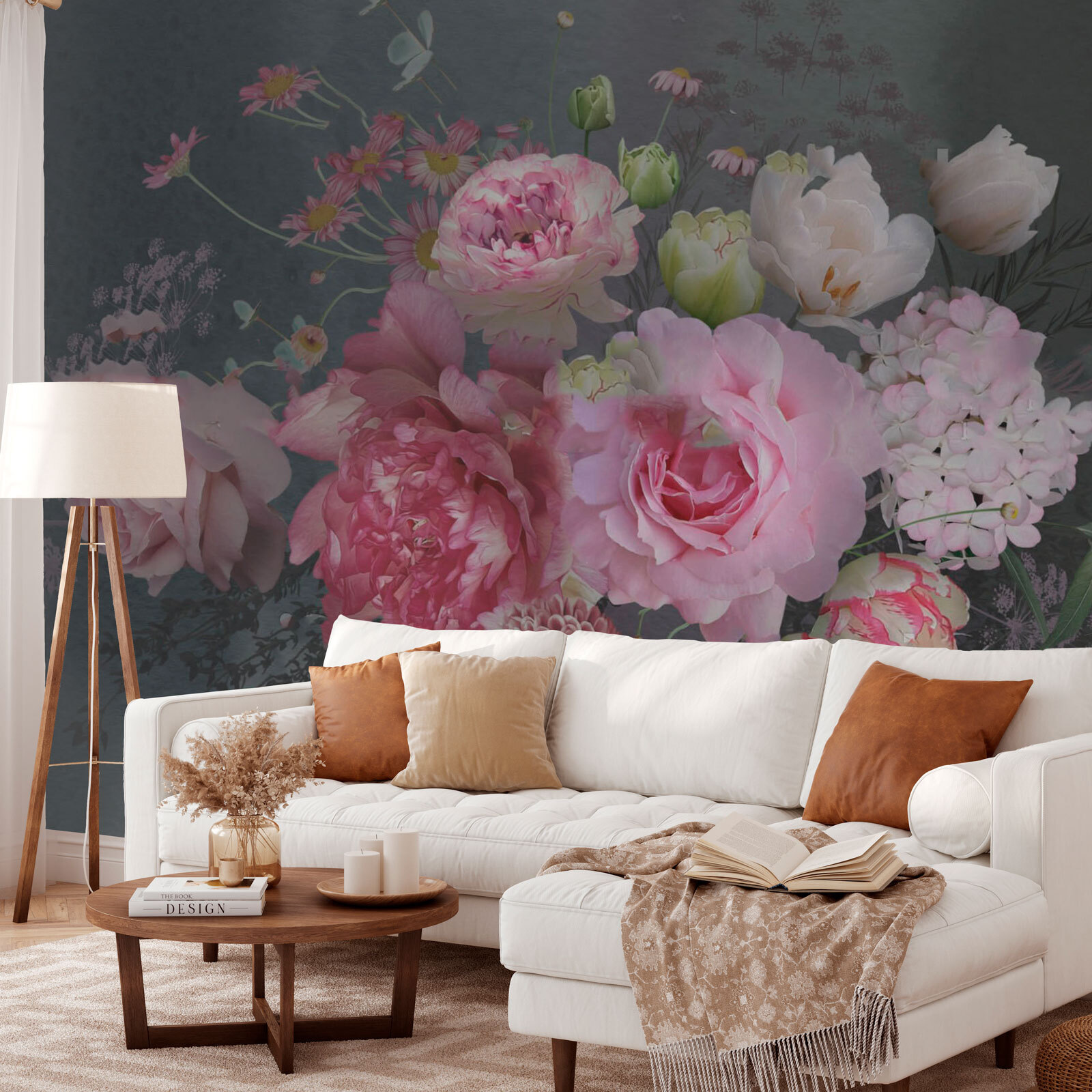 Transform any wall into a blooming oasis with the “Elegant Blossoms in Graceful Arrangement” mural. Imagine stepping into a garden bursting with pretty peonies and playful daisies, all set against a calming backdrop. It’s like nature decided to hang out indoors—who wouldn’t want that? This mural doesn’t just add color; it adds warmth, inviting you and your guests to pause and enjoy the view. It’s perfect for brightening up a quiet corner or making a statement in a living room. Like a breath of fresh air, it’s hard not to smile when seeing these charming blooms every day. Plus, it’s low maintenance—just hang it up and let the flowers do their magic!