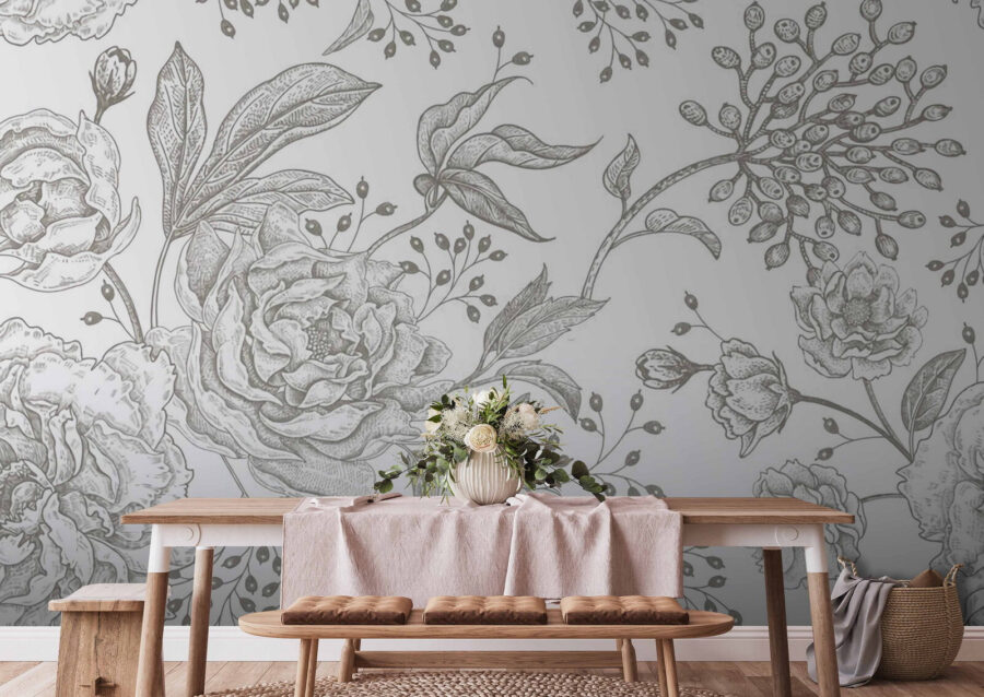 Transform your space with this stunning wall mural featuring delicate floral designs in soft hues. Imagine waking up to a gentle cascade of peonies and dainty buds, as if nature itself decided to set up camp on your wall. This mural doesn’t just beautify—it’s like a breath of fresh air for your room. Perfect for a cozy nook or a serene bedroom vibe, it invites calmness with its soft colors and intricate details. Plus, it’s a great conversation starter! Friends will be asking where you found this dreamy floral masterpiece. Bring a little garden magic indoors—who wouldn’t want that?