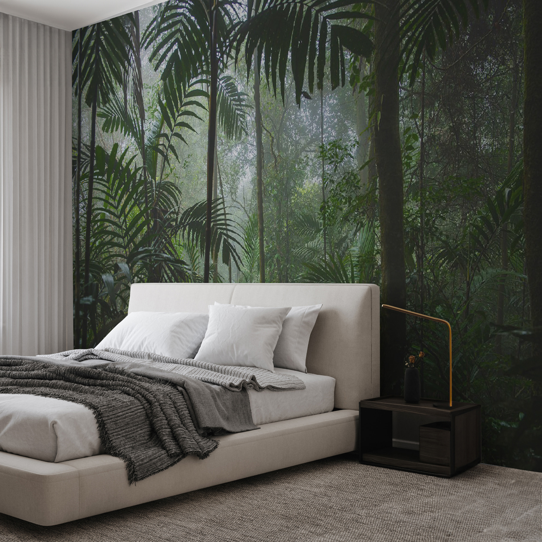 Transform any room into a serene escape with the “Dense Jungle with Misty Atmosphere” wall mural. Imagine stepping into a lush, green paradise, where each palm leaf whispers secrets of the rainforest. The soft mist adds a touch of mystery, perfect for those lazy afternoons spent daydreaming or sipping tea—yup, it’s basically a mini-vacation without leaving your couch! This mural doesn’t just decorate; it invites adventure, beckoning you to explore every detail. Whether it’s a cozy corner or a grand living space, this mural wraps the room in a calming embrace, making great conversations inevitable. Get ready for your friends to feel a bit jealous—they might think you’ve planted a jungle in your home!