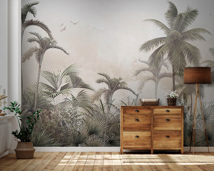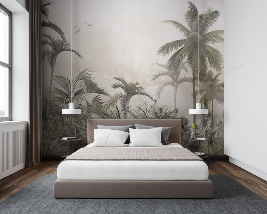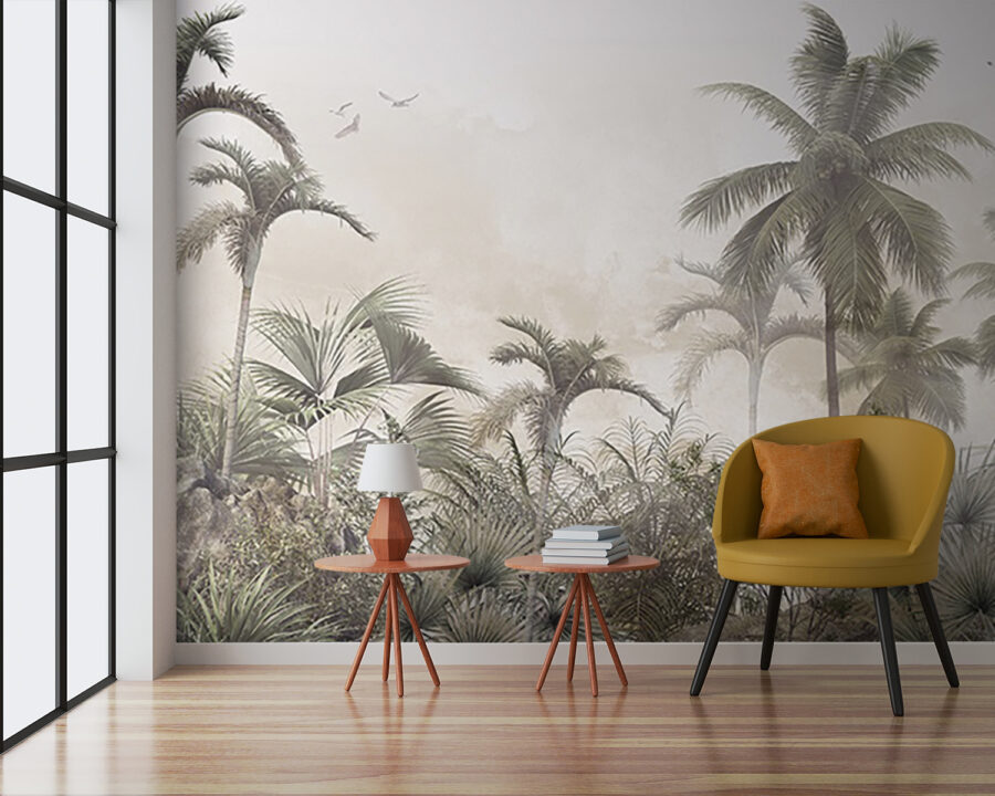 Transform any room into a chill tropical escape with this dreamy mural of palm trees and misty rocks. Picture this: you walk in, and bam! It feels like a mini-vacation every time you glance at it. The soft fog wraps the scene in a cozy hug, inviting daydreams of sunny beaches and rustling leaves. It’s got that laid-back vibe, making it perfect for a living room, bedroom, or even a home office that desperately needs some zen. Think of it as nature’s way of saying, “Relax, you’ve earned it!” Whether you’re sipping coffee or planning your next adventure, this mural adds a splash of tranquility. Just imagine the compliments from friends—you might even catch someone trying to sneak a nap nearby!