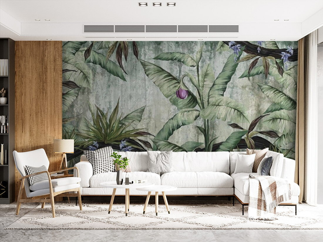Transform any space into a tropical escape with this stunning wall mural featuring lush foliage and delicate purple flowers. Just imagine walking into your room and feeling like you’ve stepped into a hidden garden—how refreshing is that? The rich greens and playful pops of color invite a sense of calm, making it perfect for a living area or cozy nook.