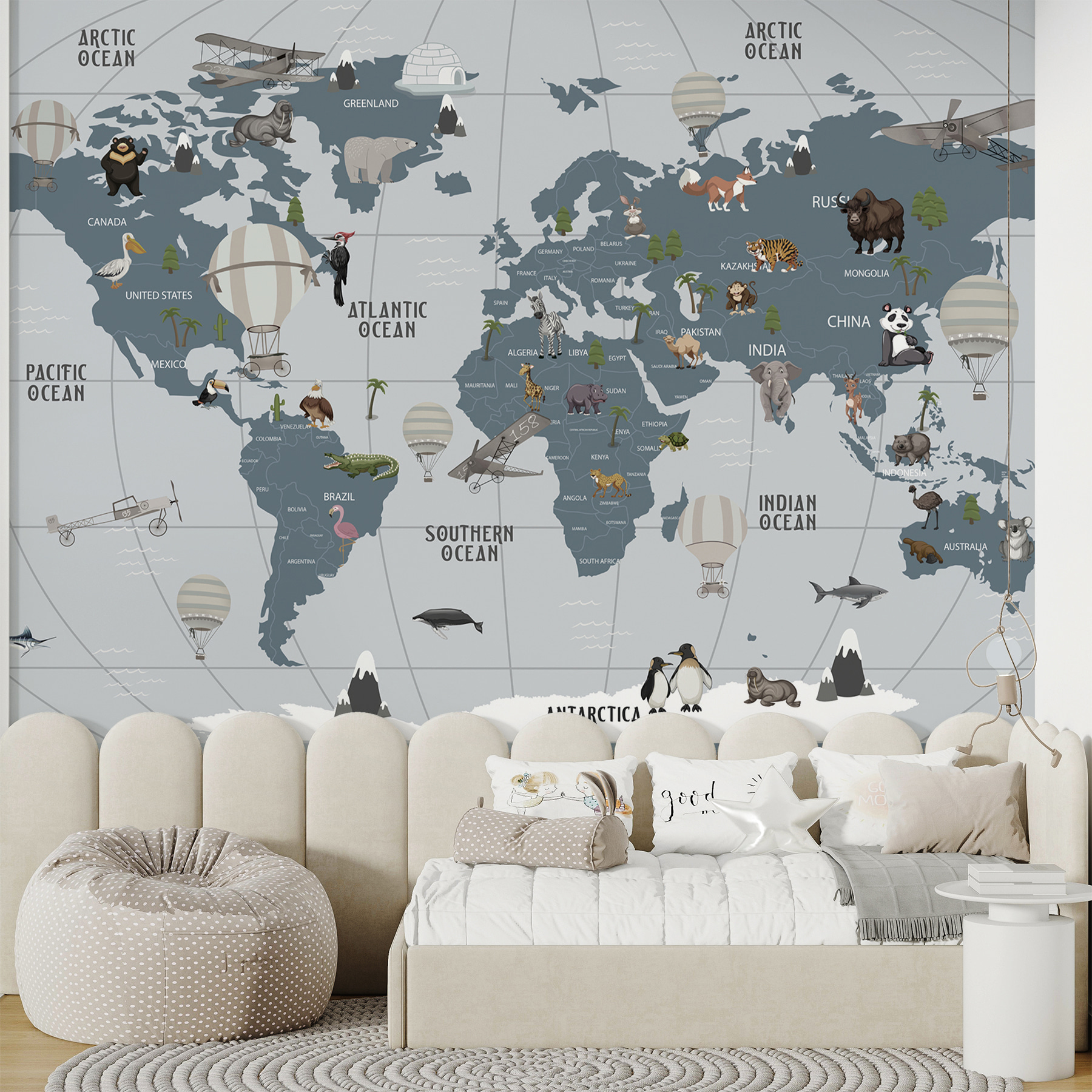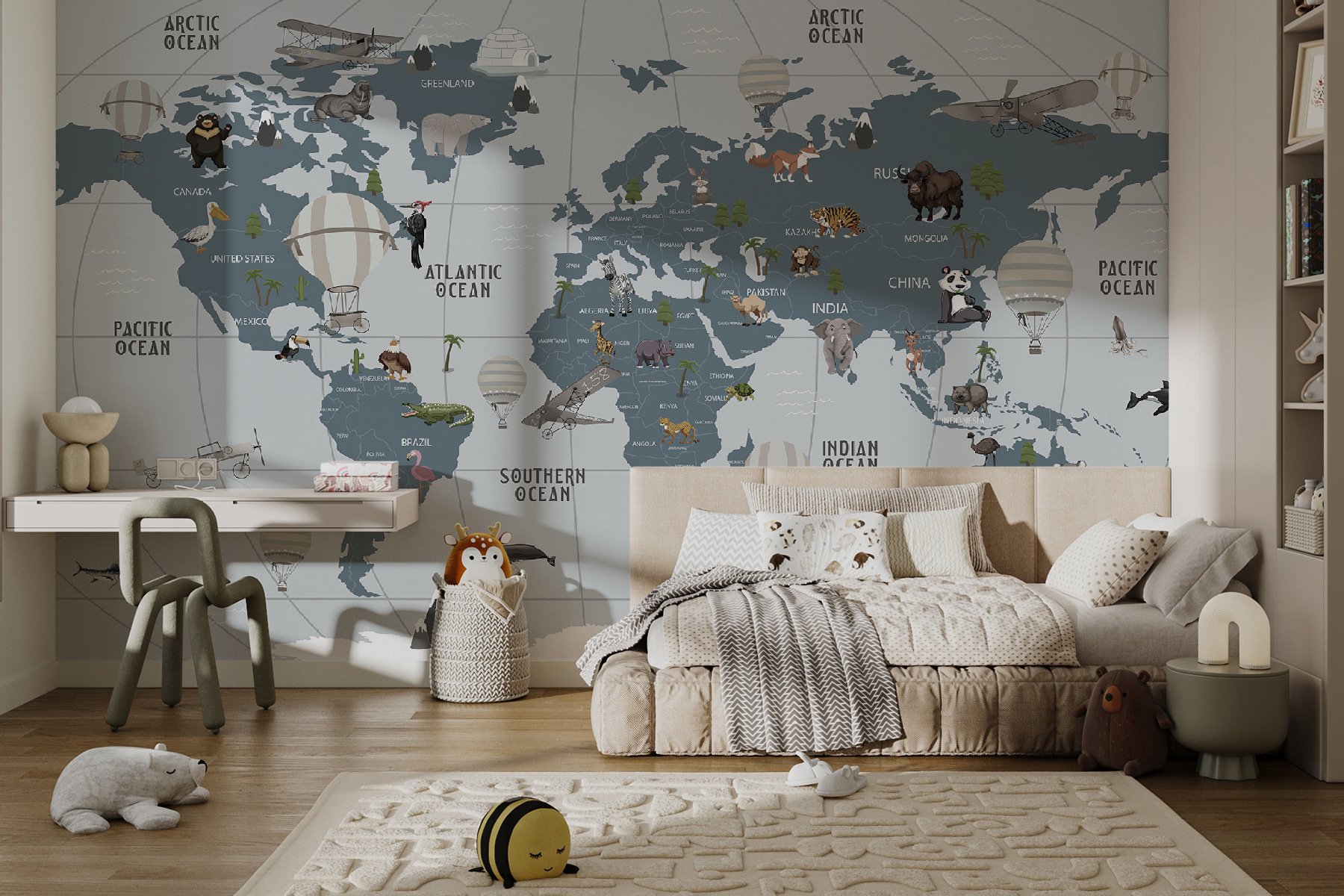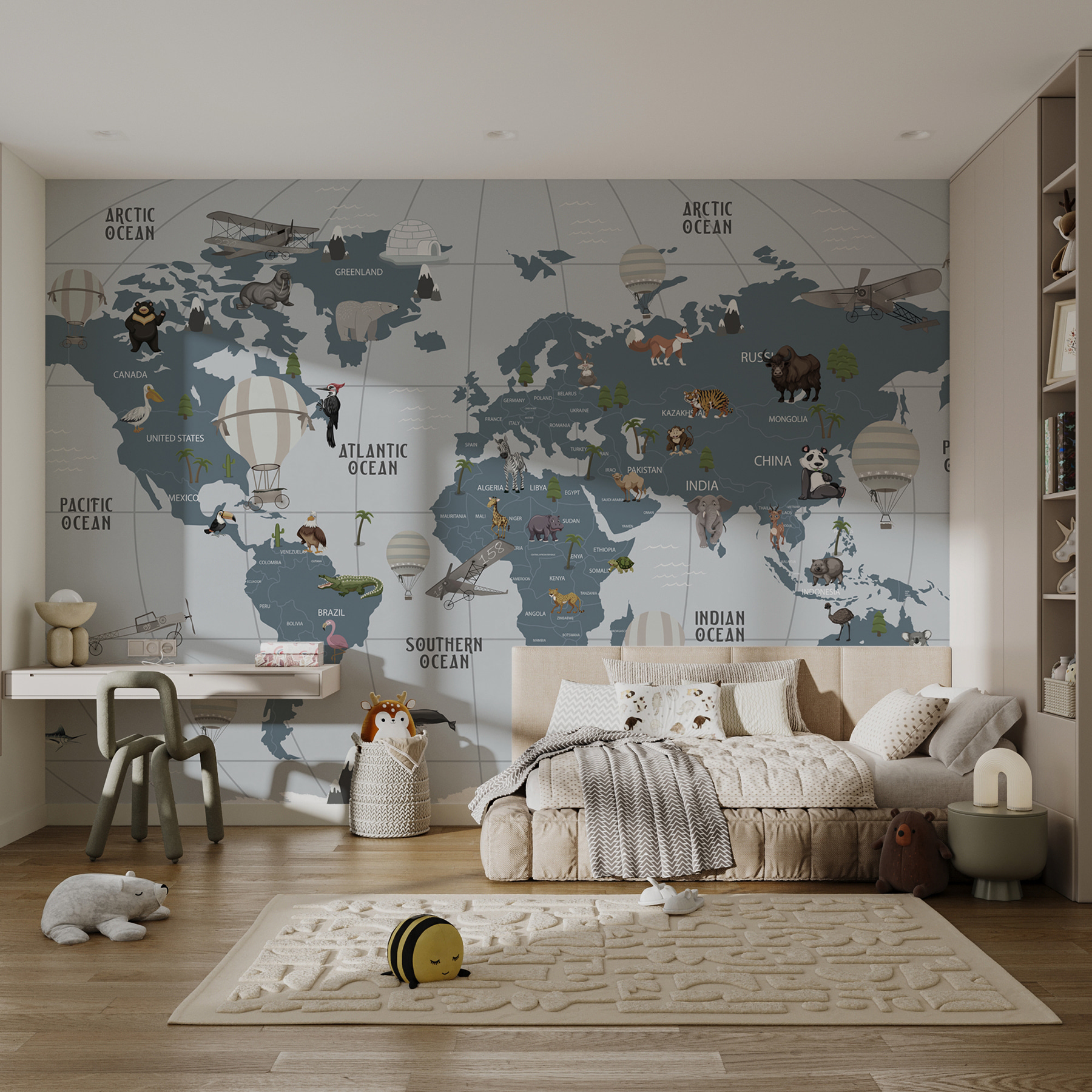 Transforming a room into a dreamy escape is just a mural away! This “Hot Air Balloon in the Sky” mural brings a playful splash of adventure to any child’s space. Imagine little ones gazing at flying balloons while cozying up with their favorite book—it’s like a mini-vacation every day. With critters peeking from afar, curiosity gets a boost! This mural isn’t just decor; it’s a conversation starter, a backdrop for daydreams, and a map to imagination. Let every glance ignite a new story—who knows where they’ll want to fly next? With a touch of whimsy and charm, it’s sure to brighten any room, making it a delightful haven for young explorers.