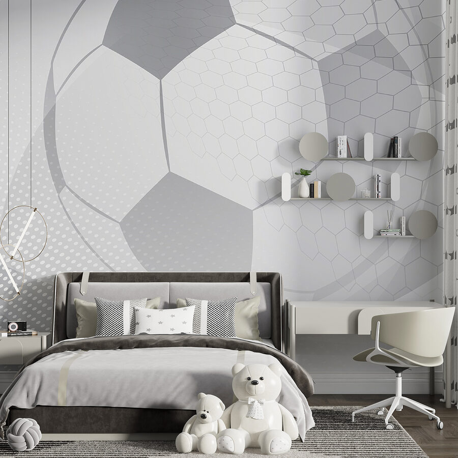 Transform any space with this cool wall mural featuring a geometric soccer pattern in sleek grayscale. Imagine walking into a room that instantly feels like a mini stadium—perfect for aspiring athletes and future soccer stars. The striking design creates a playful vibe, yet it’s subtle enough to keep things stylish. Kids will love it and so will parents, who’ll get to bask in its timeless appeal. It’s like inviting a little soccer magic into your home! Whether it’s for a playroom or a bedroom, this mural will spark imaginations and maybe even a few soccer dreams.