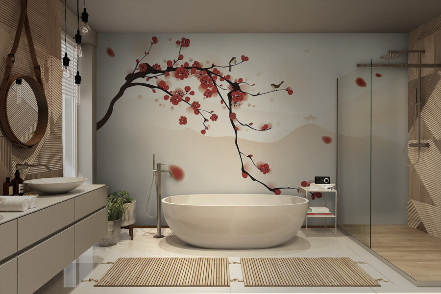 It’s like having your own little slice of paradise right on your walls. Feeling a bit inspired? This mural invites imagination—maybe it sparks thoughts of wandering through a blooming orchard or sipping tea under a cherry blossom tree while birds chirp their little tunes. It effortlessly blends beauty and tranquility, making it a cozy addition to any home. Perfect for those who crave a touch of nature indoors!