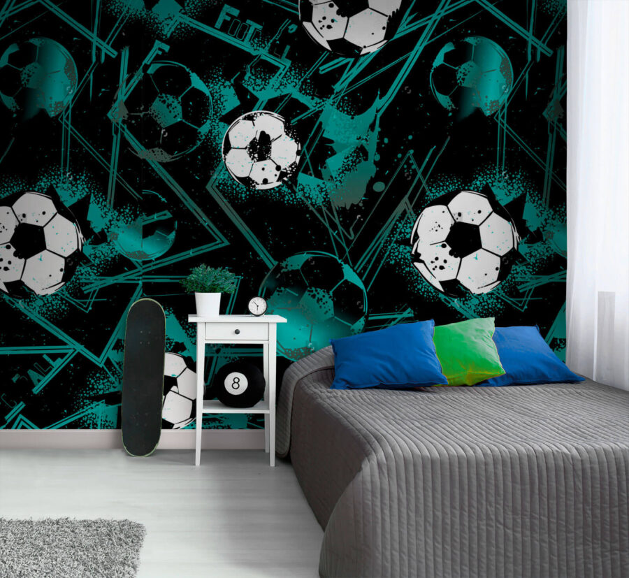 Transform your space into a vibrant playfield with this dynamic wall mural, featuring a playful pattern of footballs bouncing against a backdrop of bold colors. It’s like having a mini stadium right at home! Imagine the little ones giggling as they kick imaginary goals or your friends debating the latest match while feeling the energy this mural brings. The fun design makes it a perfect fit for a game room, kids’ playroom, or even a cozy corner where sports dreams come alive. With this mural, every wall tells a story—one of teamwork, excitement, and endless possibilities!