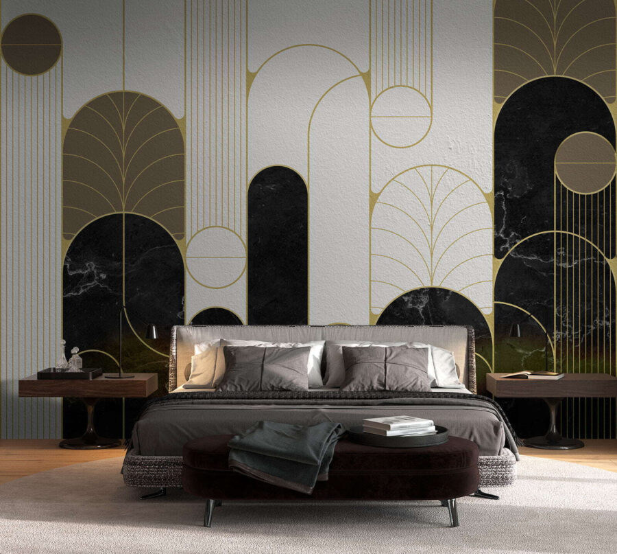 Transform a dull wall into a stunning focal point with this Art Deco geometric pattern mural. The bold curves and sleek lines create an architectural feel that instantly adds character to any space. Picture this—friends walk in, their eyes widen, and someone exclaims, “How chic!” It almost feels like stepping into a stylish gallery. Whether it’s in a living room, bedroom, or even a cozy nook, the pattern pairs beautifully with plants or that quirky lamp you love. It’s not just decor; it turns your space into a conversation starter. Perfect for when you want to impress, or just enjoy a daily dose of elegance.