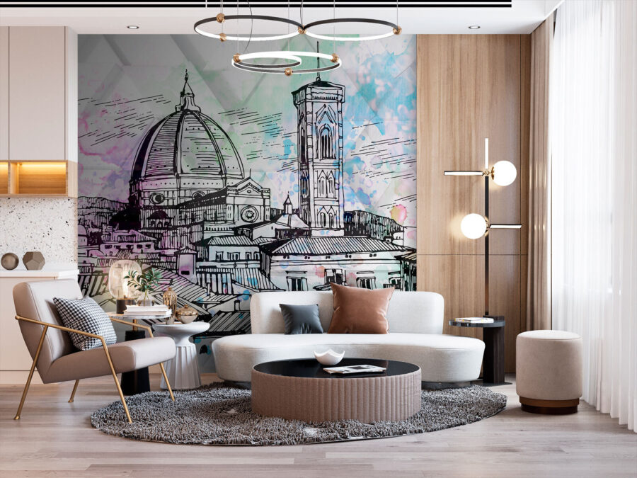 Turn your wall into a conversation starter with this striking mural of a beautiful building. Imagine a vibrant cityscape splashed with watercolors—the perfect backdrop for cozy chats or solo daydreaming. It’s like bringing a piece of urban charm right into your living room. The mix of soft pastels and bold lines creates a lovely contrast that’ll catch eyes and spark imaginations. Picture friends wandering over, their gazes drifting to those charming rooftops, as they guess which city it’s from. Adventure is just a glance away! Perfect for anyone looking to add a dash of creativity and a sprinkle of wanderlust to their space.