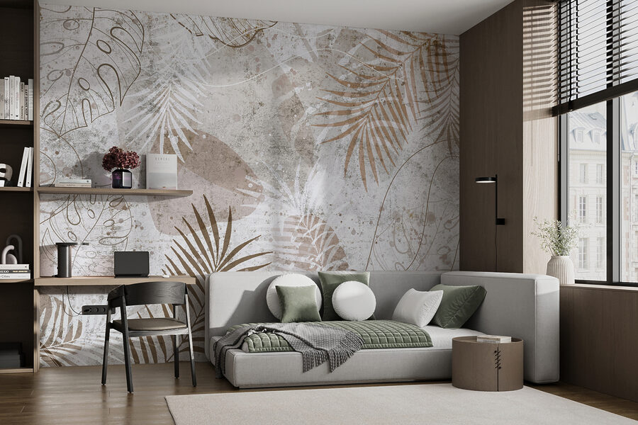 Transform your space into a tropical oasis with this stunning wall mural featuring an abstract tropical leaves pattern. Imagine stepping into your room and feeling like you’re under a soft, leafy canopy, even if it’s just Tuesday and you’re still in your pajamas. The earthy tones and elegant lines blend beautifully, creating a calming vibe—perfect for unwinding after a long day or sipping morning coffee.