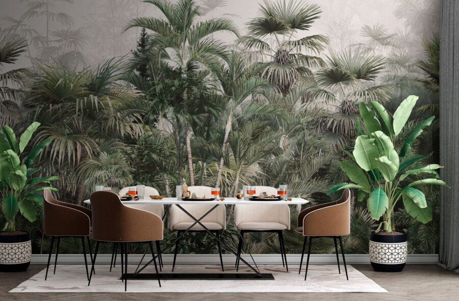Transform your space into a lush escape with this stunning wall mural of a dense tropical jungle, complete with a mysterious misty sky. Just imagine stepping into your room and feeling like you’ve wandered into your very own oasis. The vibrant greens and playful shadows create a calming vibe that invites daydreaming—perfect for sipping coffee while lost in thought. It’s like having a slice of paradise right on your wall, minus the mosquitoes! This mural isn’t just decor; it’s an experience waiting to happen, turning any plain wall into a conversation starter. Perfect for nature lovers or anyone needing a tropical getaway, right at home.