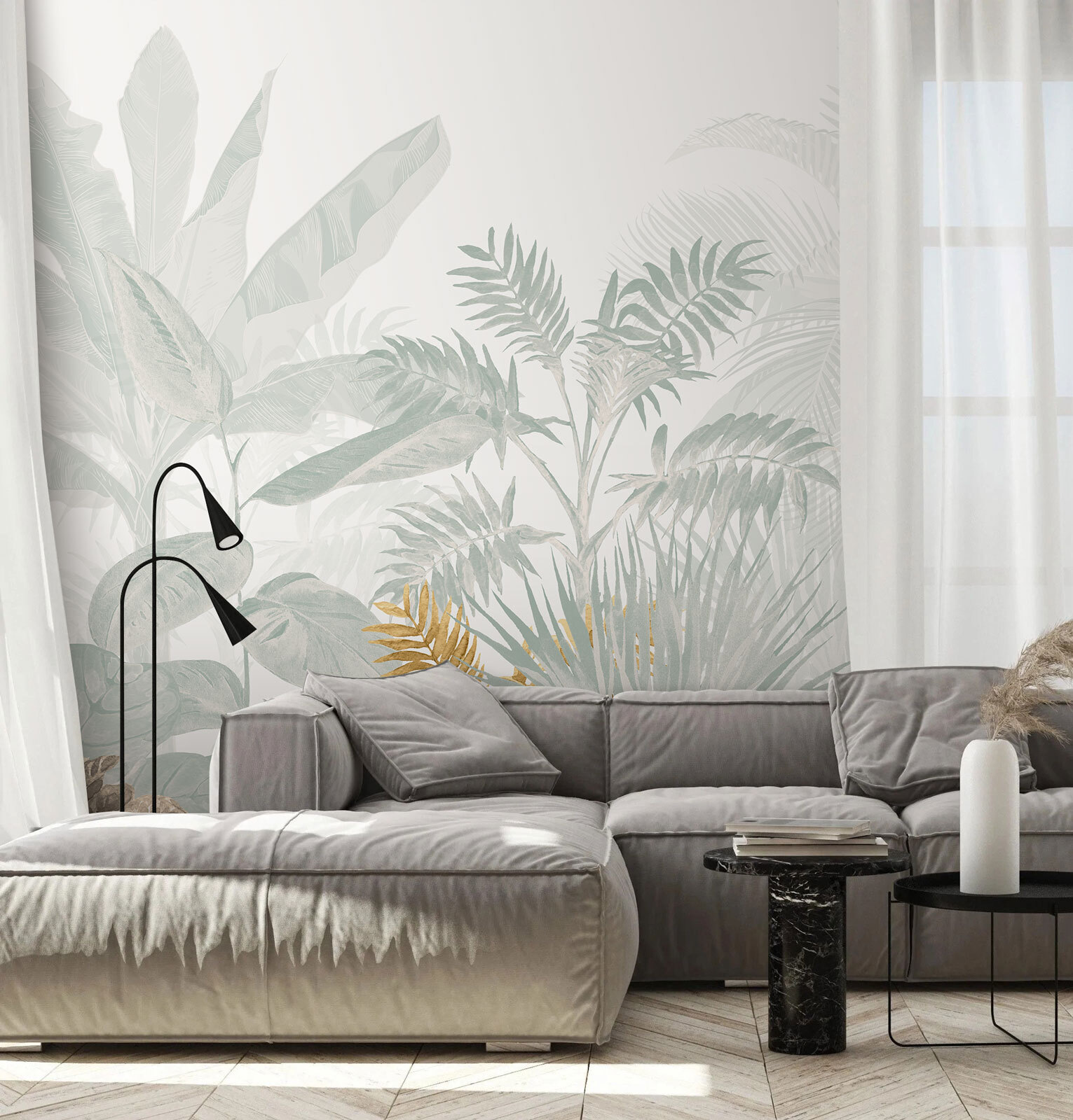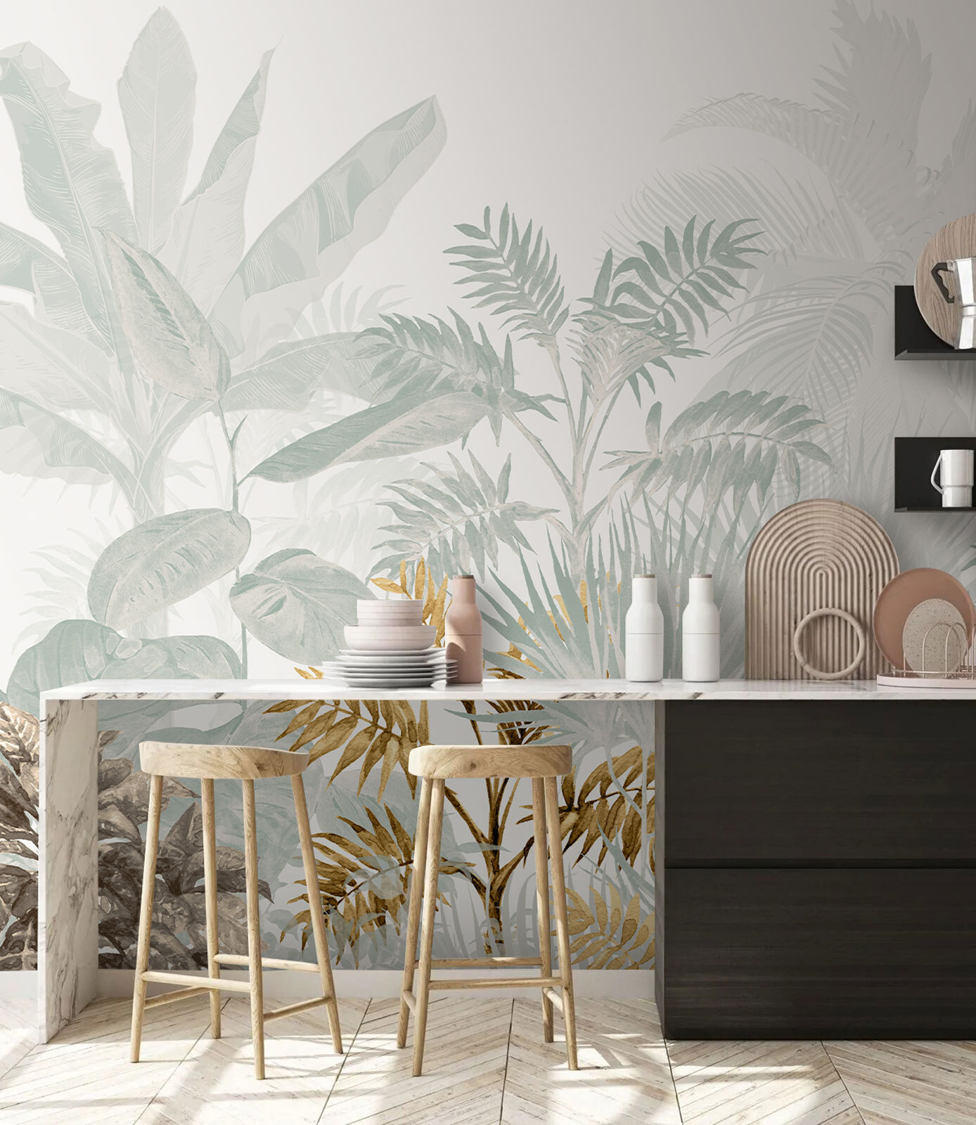 Transform any space with this lush tropical leaves mural that feels like a little slice of paradise right in your home. Imagine walking into a room and being greeted by the gentle whisper of palm fronds and vibrant foliage, inviting you to relax and unwind. Perfect for a cozy reading nook or a lively living room, it brings the feel of a jungle retreat indoors. The blend of soft greens and subtle patterns creates a soothing backdrop that feels fresh and lively without being overwhelming. It’s like having a mini vacation spot, minus the plane ticket!