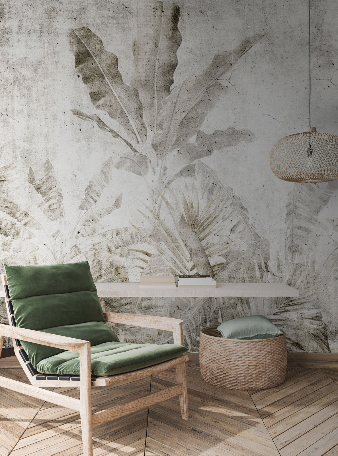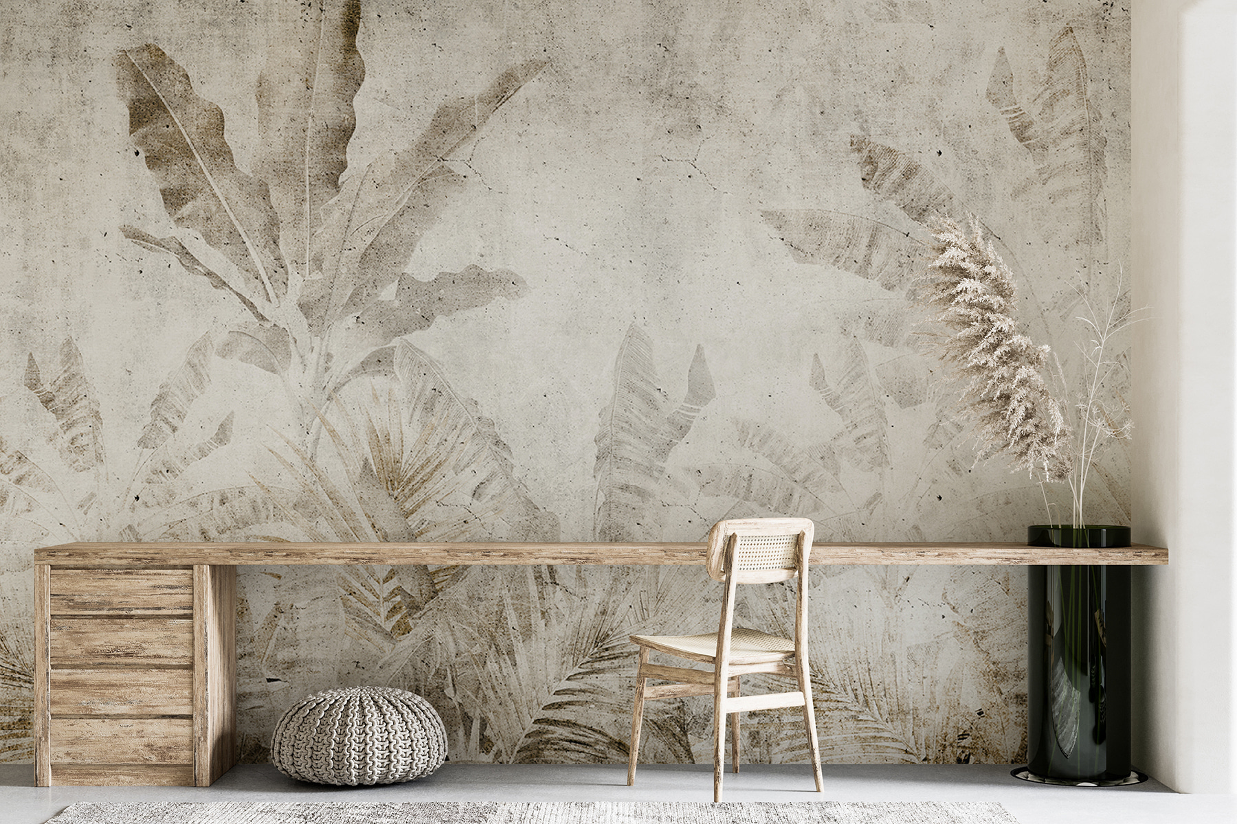 Transform any room with “Faded Leaves on Rustic Wall.” This mural whispers understated elegance, blending soft, faded leaves with a charmingly worn concrete backdrop. Imagine stepping into a serene oasis every time you walk by. It’s like bringing a bit of nature indoors without the mess—no watering required! Perfect for a cozy reading nook or an inviting living room, it creates depth and a sense of calm. Plus, it’s intriguing, sparking conversations about your impeccable taste. So, why not let those walls tell a story? Dive into a botanical dream today!
