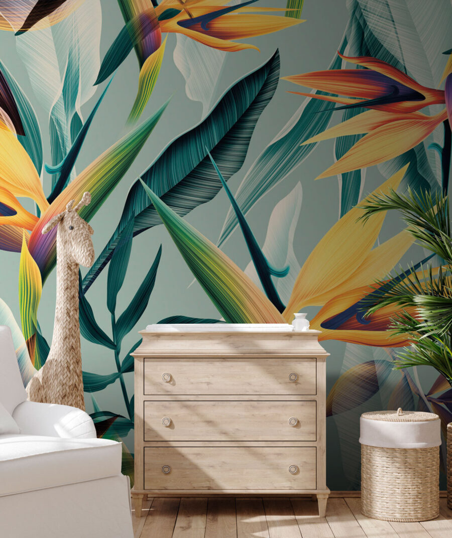 Transform your space with the vibrant “Wall Murals Birds of Paradise.” This stunning design bursts with colorful tropical blooms and lush foliage, turning any room into a lively oasis. Imagine sipping your morning coffee while surrounded by this cheerful paradise—it’s like bringing a little slice of the rainforest indoors. The intricate details draw you in, making you forget about the outside world (at least for a moment). Perfect for a living room or a cozy reading nook, this mural whispers warmth and invites relaxation. Plus, who wouldn’t want to feel like they’re vacationing in their own home? Go ahead, let your walls sing!