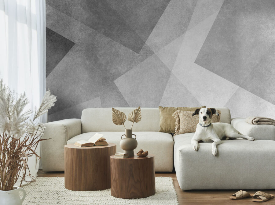 Transforming your space into a cozy retreat? This mural, with its chic white and grey design, does just the trick. Imagine walking into your room—light filters through, and those playful geometric shapes dance on your walls. It’s like a modern art gallery, but right at home. Perfect for a living room or even a quiet office, it brings a calming vibe that feels effortlessly stylish. Plus, it’s a great conversation starter. Friends might wonder where you found such a gem! Why not let your walls tell a story? After all, every corner of your home deserves a touch of personality.