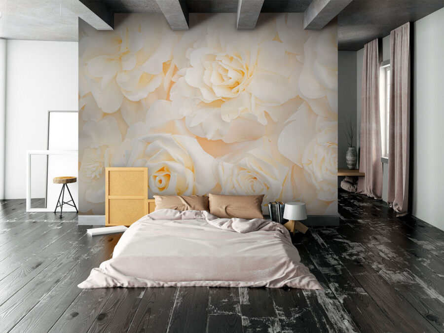 Wall murals Soft petals in creamy white bloom Wall murals Soft petals in creamy white bloom