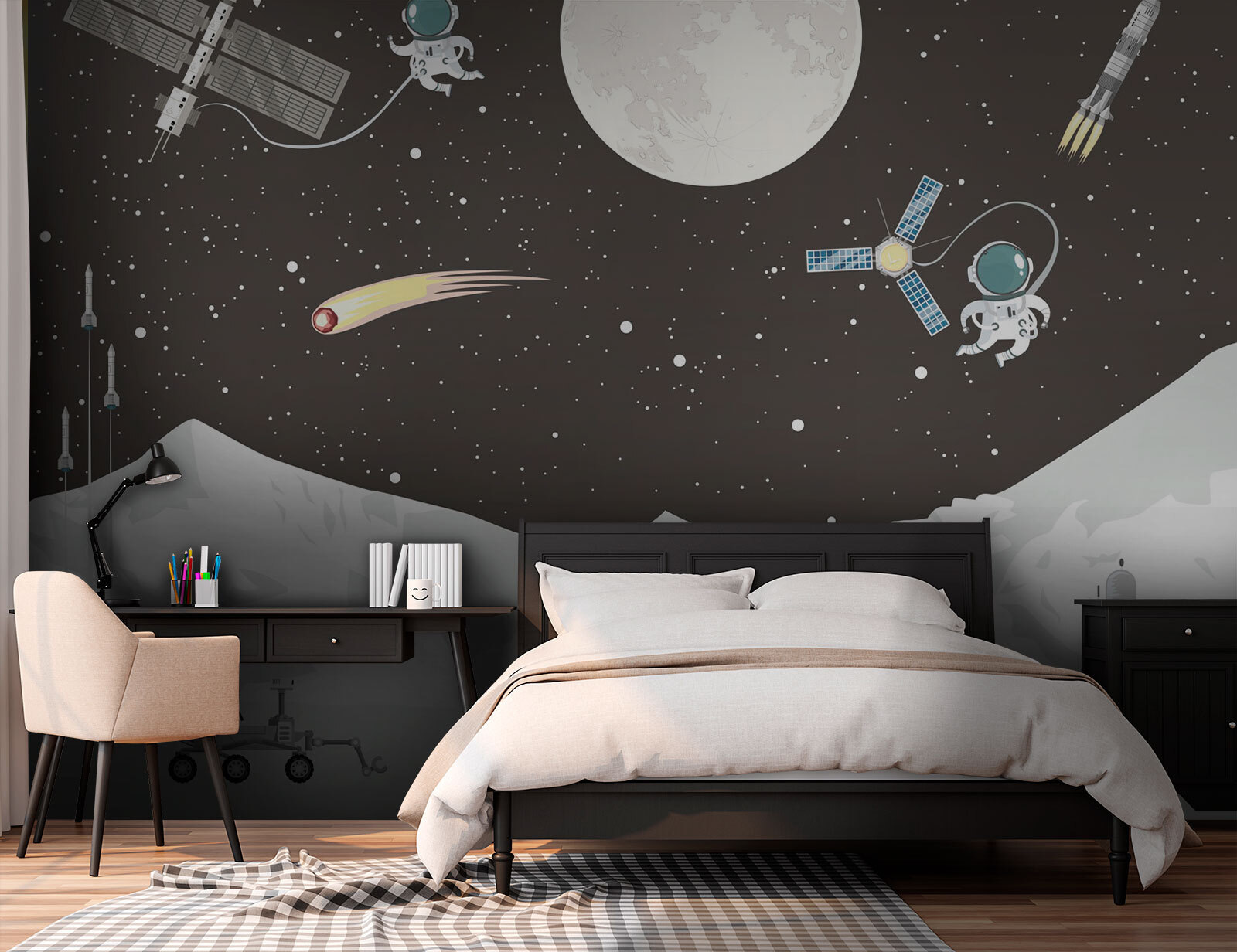Transform your space with the enchanting “Full Moon in the Sky” mural—it’s like stepping into a whimsical dream! Imagine twinkling stars and playful astronauts dancing among the cosmos, all while a giant moon keeps watch. This mural isn’t just decor; it’s a conversation starter! Picture kids imagining their own space adventures or grown-ups finding a moment of peace gazing at that calming lunar glow. It brings a playful vibe to any room, sparking joy and creativity. Who knew you could have an entire galaxy right on your wall? Perfect for dreamers and stargazers—life’s too short for boring walls!