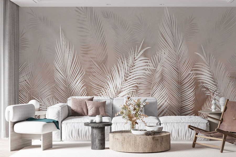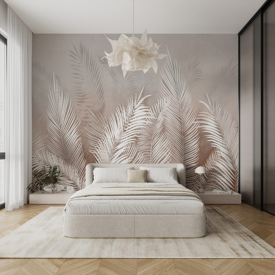 Transform any room into a tropical hideaway with this wall mural featuring elegant palm leaves against a soft background. Imagine sipping your morning coffee surrounded by leafy silhouettes that dance in the light—seriously, it feels like a gentle breeze whisking through. This design brings a touch of nature indoors without the hassle of watering plants or worrying about them wilting. Perfect for a cozy reading nook or a laid-back living area, it creates an inviting atmosphere that makes you want to kick back and relax. Who knew wall decor could be so…refreshing?