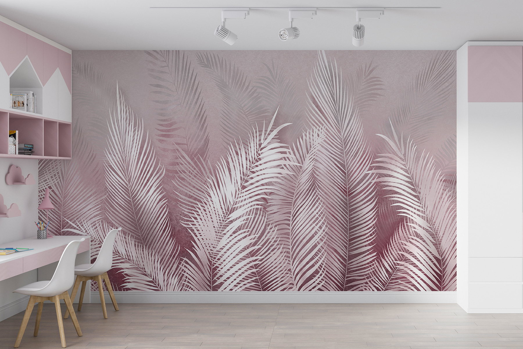 Transform any room into a tropical paradise with this elegant pastel palm leaves mural. Imagine stepping into a serene oasis every time you walk through the door. The soft hues gently wrap around your walls, creating a dreamy backdrop that feels both calm and refreshing. It’s like having a little slice of nature right at home. Picture a cozy reading nook, a cup of tea in hand, as these beautiful leaves seem to sway with a light breeze. Perfect for those who love unique decor—it’s all about capturing those laid-back, sun-soaked vibes without breaking a sweat. Every glance at this mural might just spark a daydream of sandy beaches and palm trees swaying in the wind. A great way to add a touch of whimsy to any space!