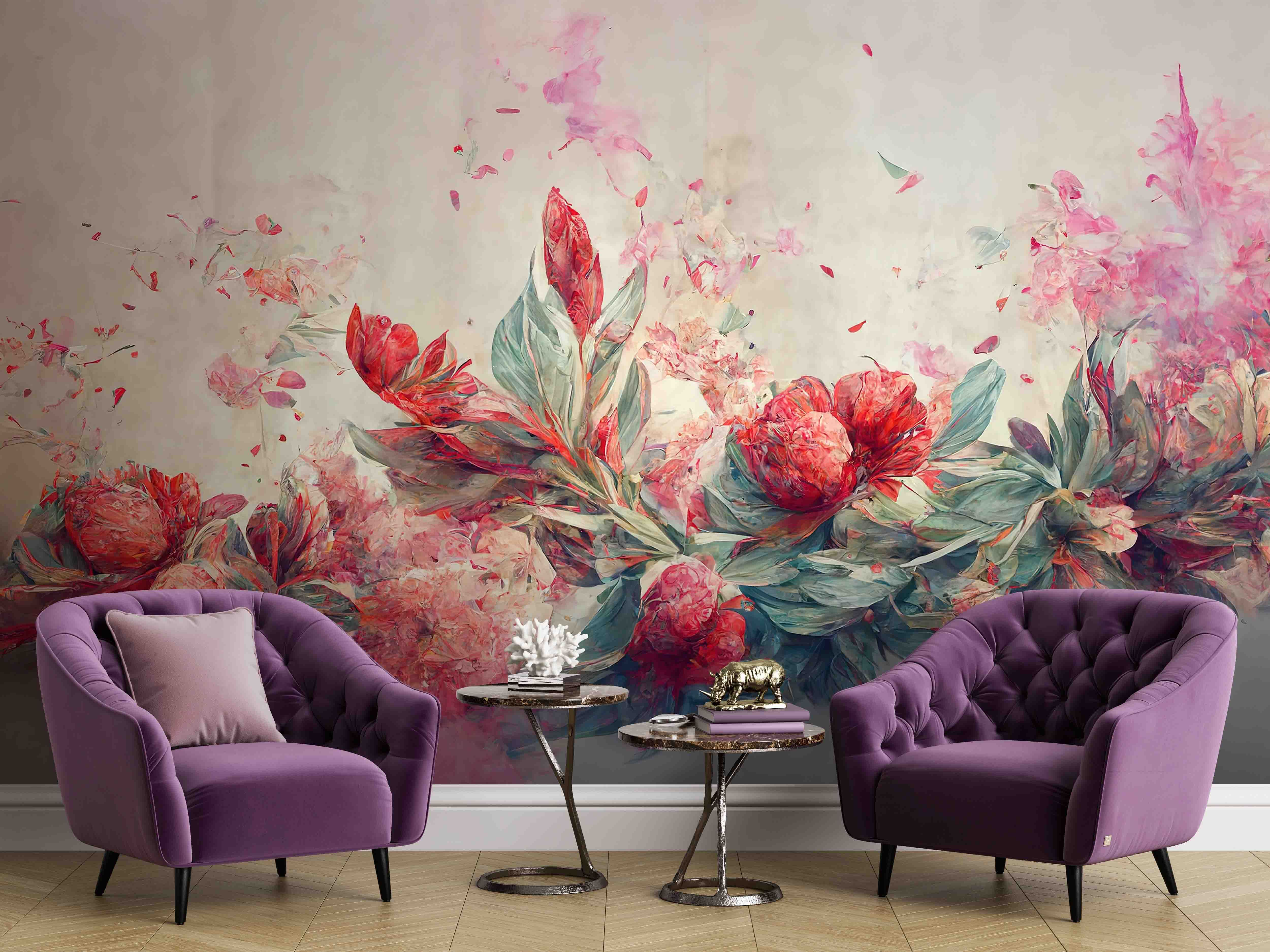 Brighten up any space with this stunning wall mural that captures the beauty of flowers and leaves in a way that feels almost effortless. Imagine stepping into a room where blooms appear to dance across the wall, splashing color and life everywhere you look. It’s like having a garden indoors without the pesky watering can. The warm hues of reds and soft greens create a cozy vibe, perfect for unwinding after a long day. Friends will notice it immediately, and you might catch yourself getting lost in its dreamy details. It’s a little slice of nature that makes any wall pop, turning a regular room into something special—no green thumb required!