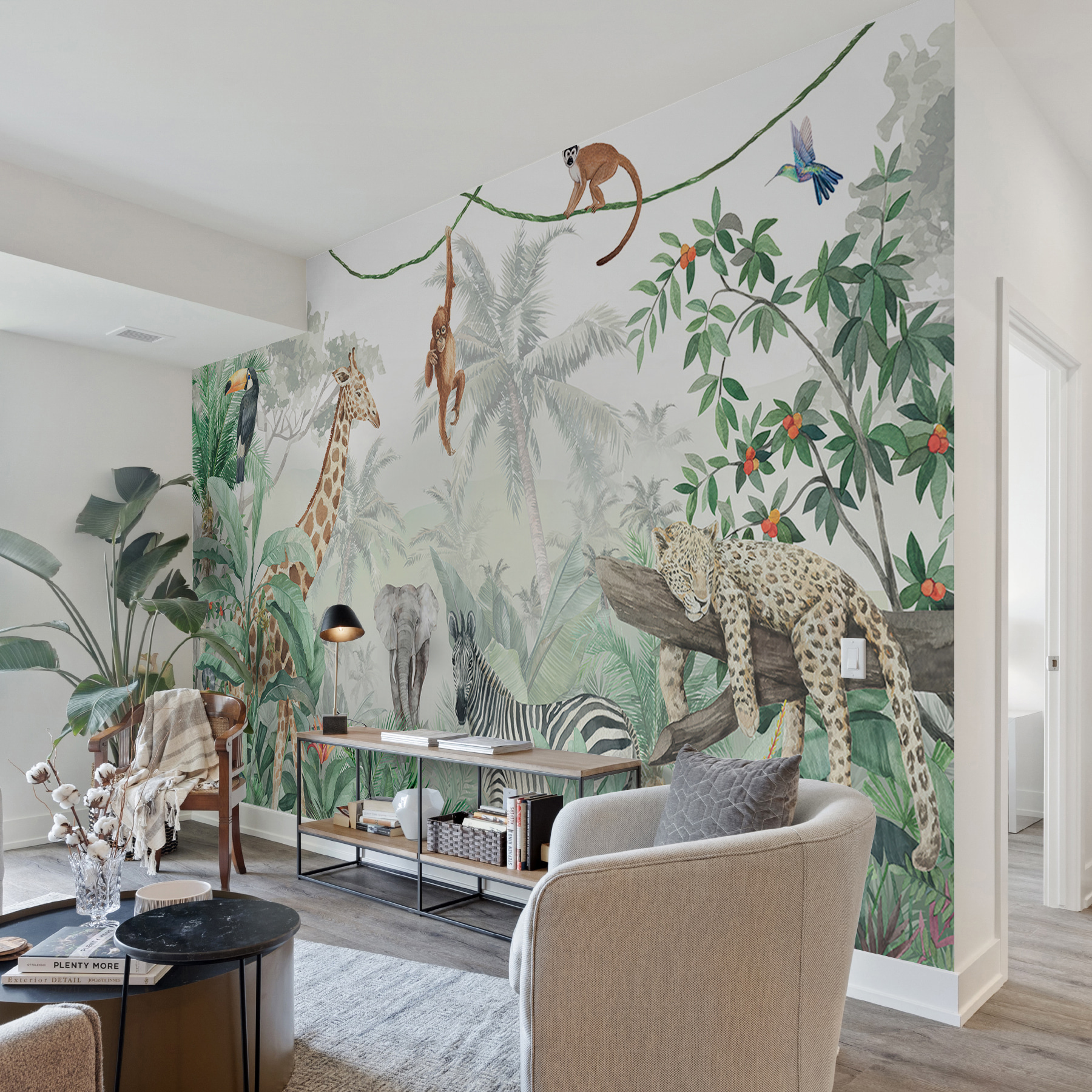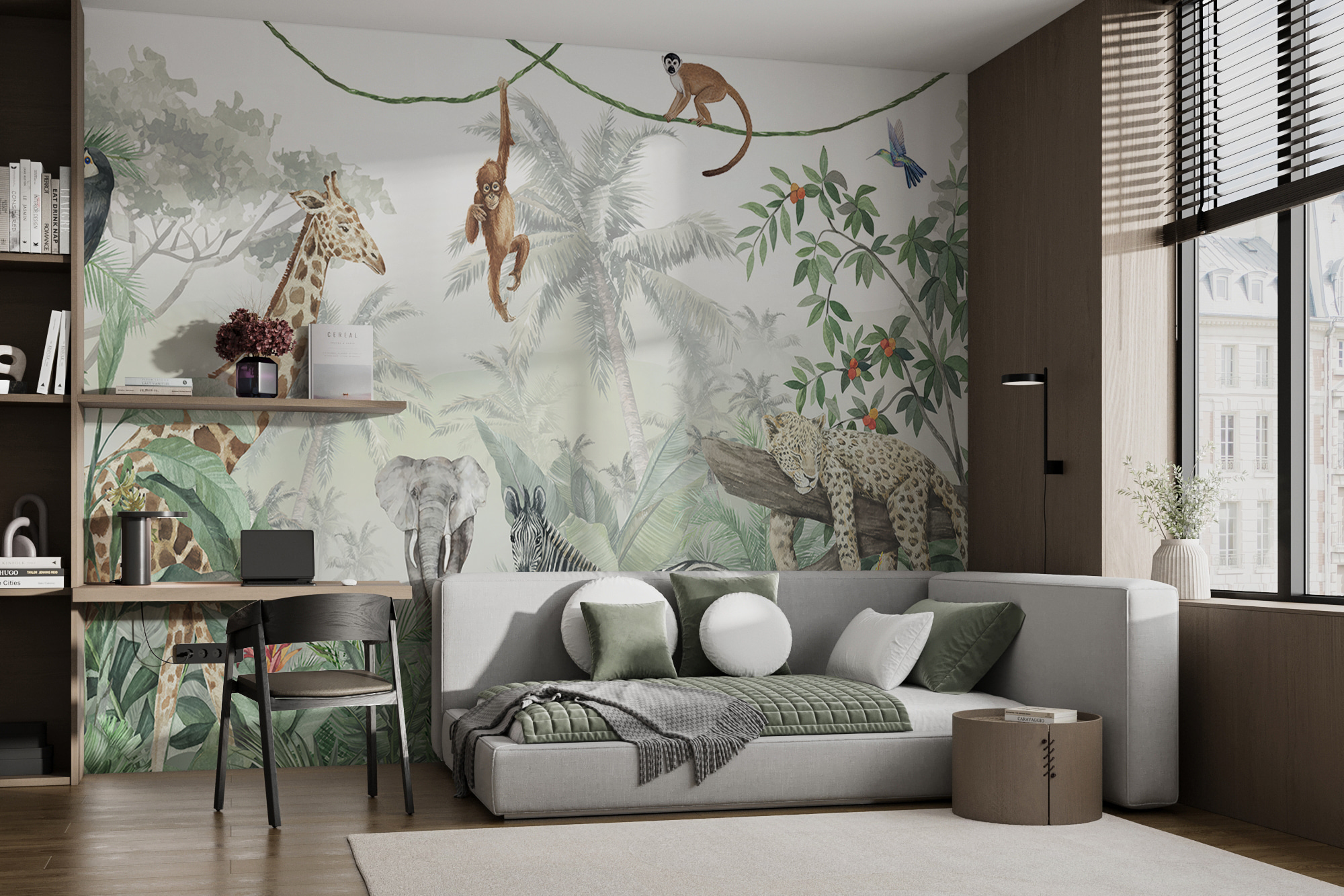 Transform any room into a serene jungle retreat with this stunning wall mural featuring a sleepy cheetah perched on a branch. Imagine the gentle rustle of leaves, the vibrant greens, and the way it just warms up the space. This isn’t just wallpaper; it’s an invitation to escape into nature right at home! Perfect for a living room or a cozy reading nook, it sparks joy and conversation. Friends might just get lost in its beauty—or they might wish they could join that cheetah for a catnap! Embrace the wild side of decor with a touch of whimsy and elegance that makes every day feel like a mini holiday.