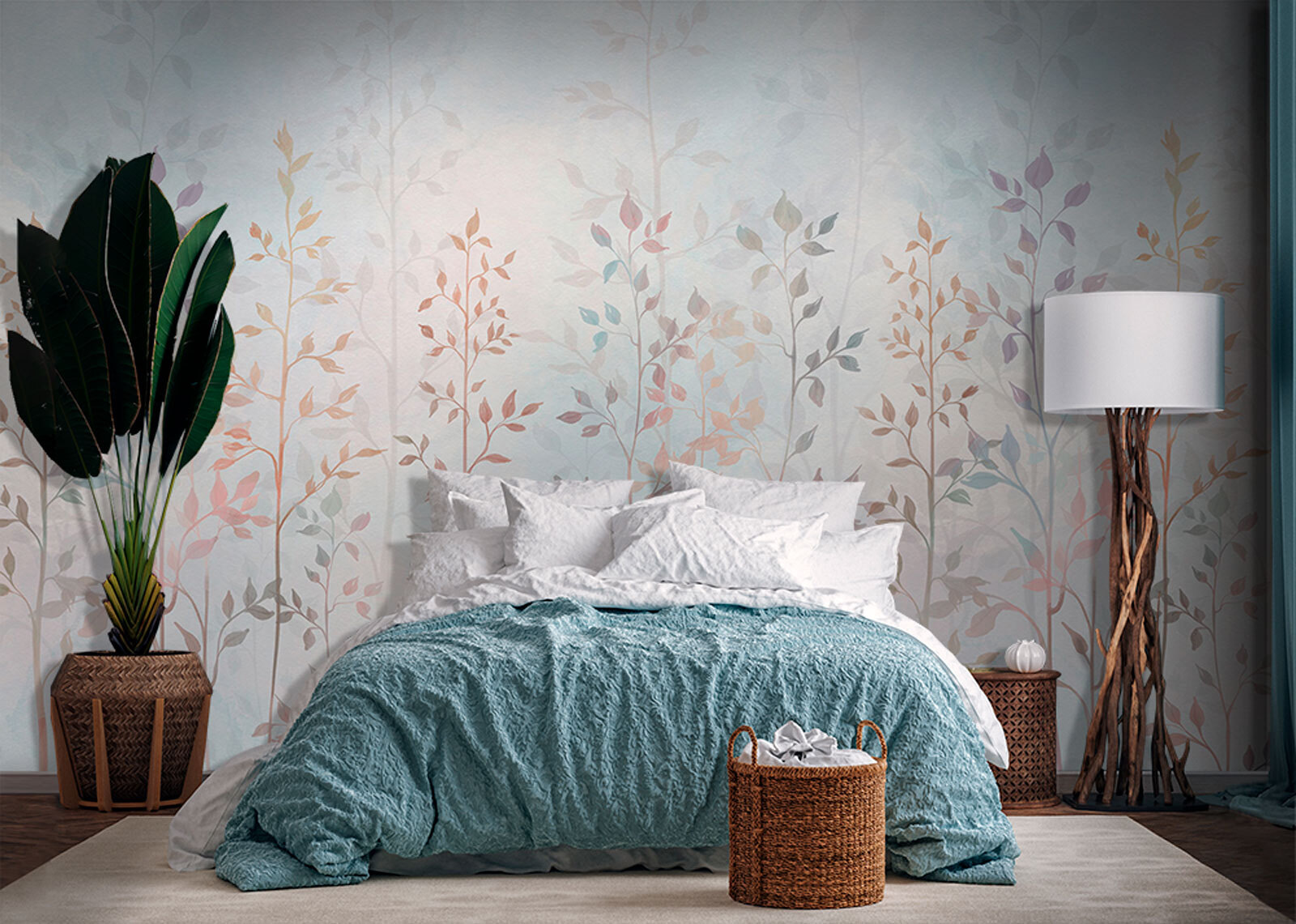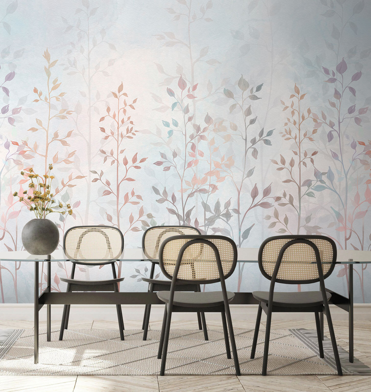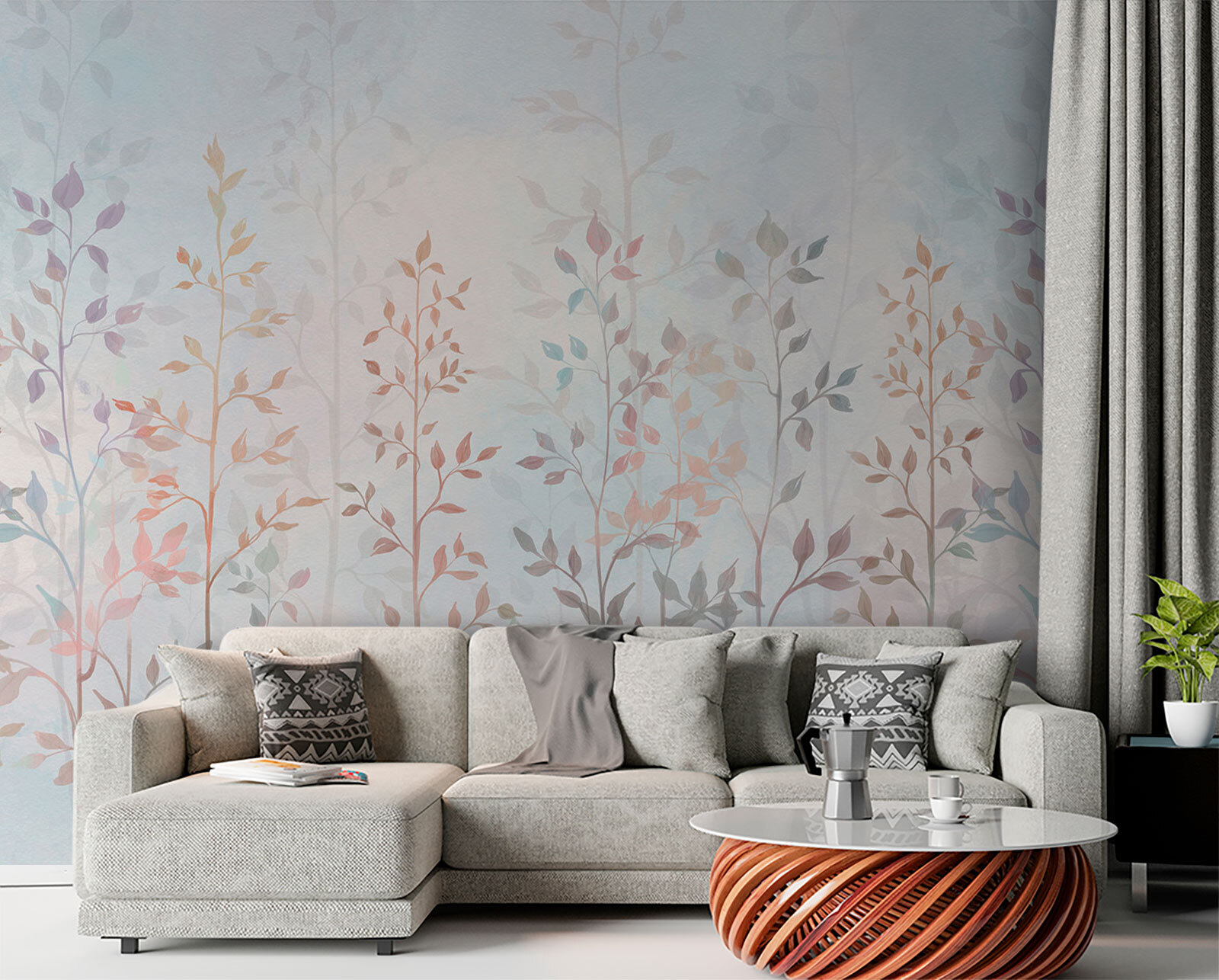 Transform a dull wall into a serene escape with the “Group of Trees with Leaves” mural. Imagine stepping into a gentle watercolor forest every time you walk into your room. The soft colors and delicate leaves create a calm, peaceful vibe—perfect for those quiet mornings with coffee or a cozy evening curled up with a book. It’s like having a slice of nature indoors, minus the bugs and dirt.