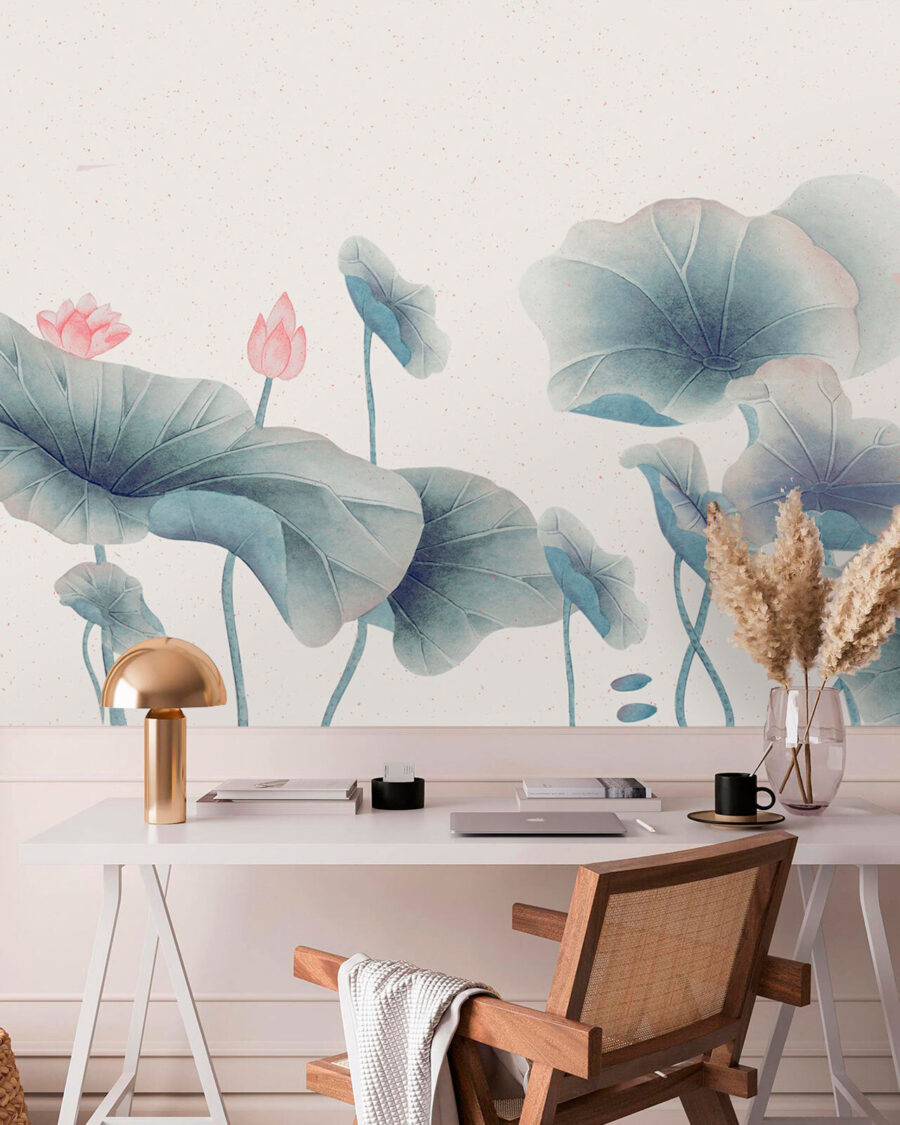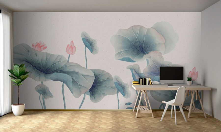 Transform any room into a serene retreat with the “Delicate Blooms in Serene Waters” mural. Imagine sipping your morning coffee, basking in the gentle hues of watercolor leaves and soft pink blossoms that look like they’ve just floated in from a tranquil pond. It’s all about those calm vibes—perfect for a cozy reading nook or a dreamy bedroom. Friends visiting? You’ll catch them staring at that wall, wondering if they’ve stepped into a chic art gallery. Seriously, it’s like nature’s giving your space a warm hug. Don’t miss the chance to invite a little peace into your home!
