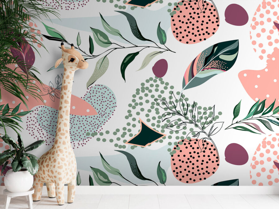 Transforming a child’s room into a wonderland is easy with this sweet abstract leaves and dots mural. It’s like nature threw a playful party right on the wall! Imagine vibrant leaves dancing among whimsical polka dots, creating a joyful vibe that sparks creativity. Perfect for a daughter’s or son’s room, this mural makes for a stylish backdrop for everything from bedtime stories to imaginative adventures. It’s not just decor; it’s a canvas for dreams. Kids will love it—who wouldn’t want their own botanical paradise? Plus, it effortlessly brightens up any space, making it feel both cozy and alive. With its gentle colors and fun patterns, this mural invites smiles and giggles, turning mundane walls into a delightful escape.