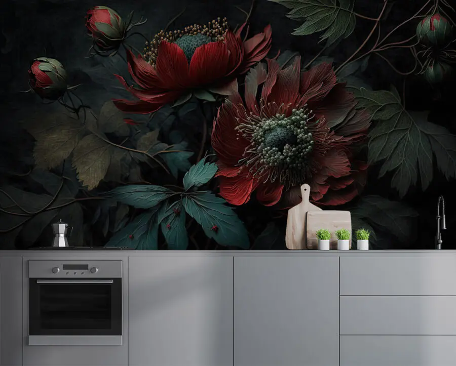 Transform your space into a floral paradise with this stunning wall mural featuring vibrant flowers set against a dark backdrop. Imagine stepping into a room where bold blooms burst with color, inviting serenity and joy. It’s like having a garden in your home, minus the watering can and pesky bees. Perfect for living rooms, bedrooms, or even that cozy nook you need to jazz up. Just picture curling up with a good book, surrounded by this enchanting display. It’s got personality and flair—definitely a conversation starter. Add a splash of style and let those blossoms breathe life into your walls!