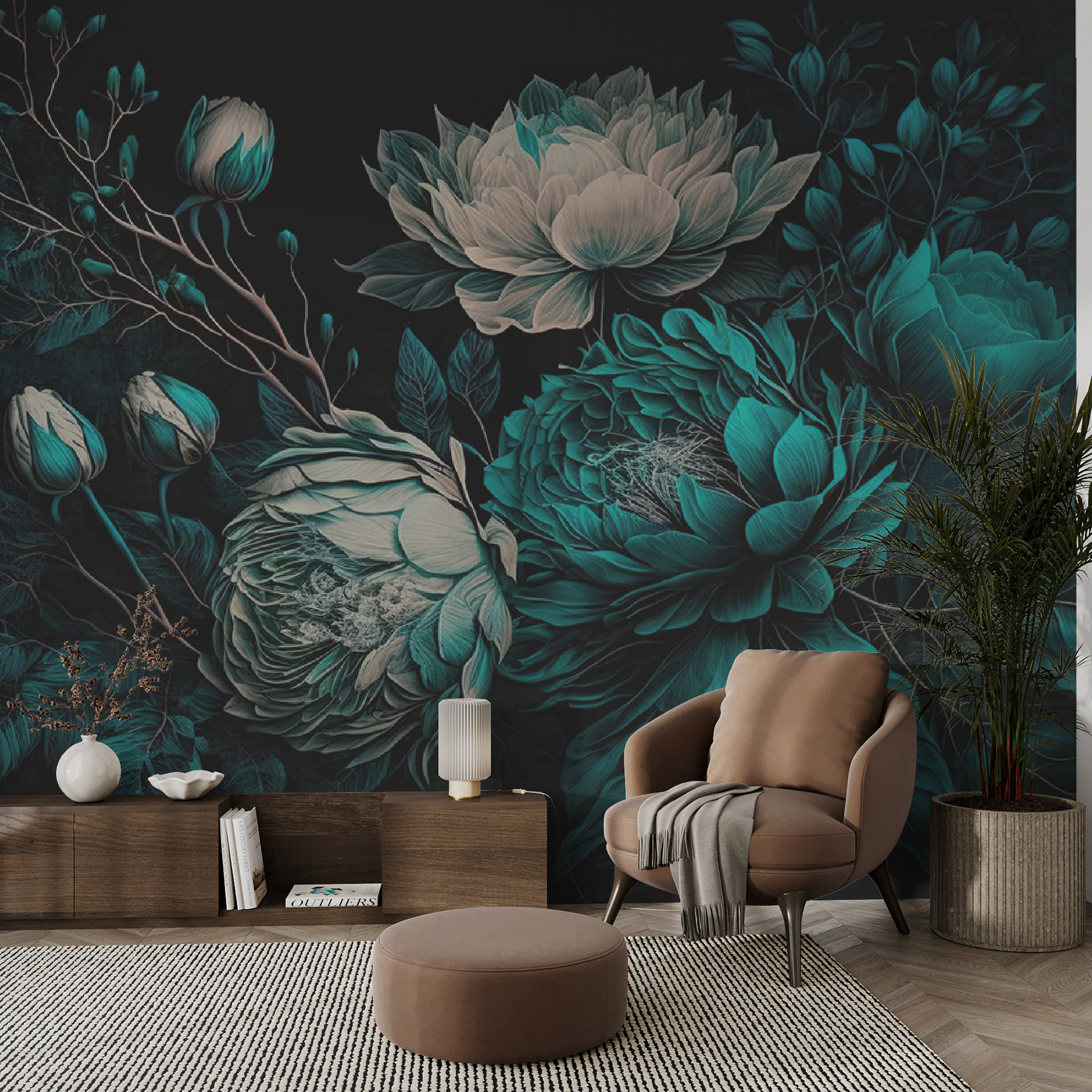 1 review for Wall murals Vibrant flowers blossom in teal hues