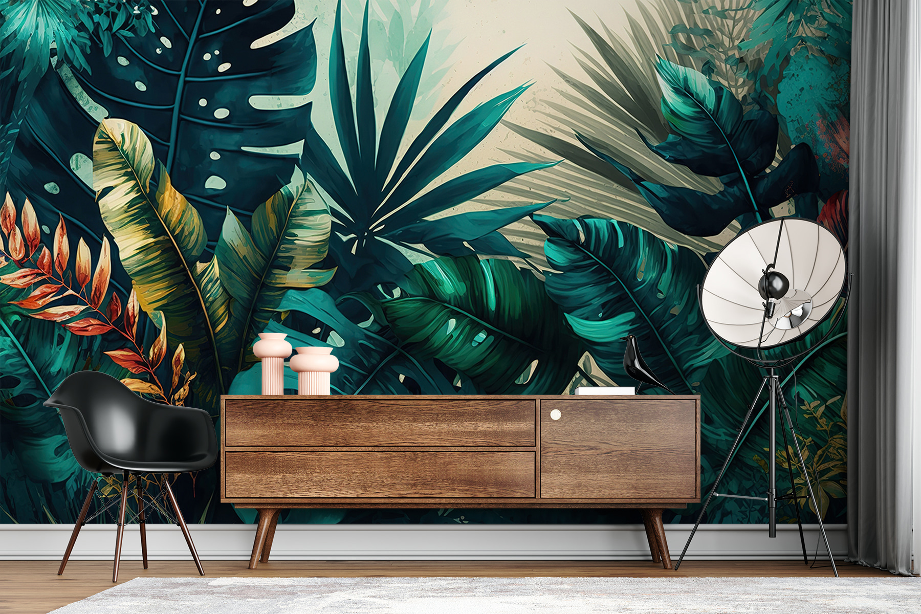 Transform any space with the “Vibrant Tropical Foliage” mural—a splash of green goodness that’ll make anyone feel like they’ve stepped into a jungle (minus the mosquitoes, thankfully). Imagine those leaves curling around your walls, creating a cozy vibe that whispers relaxation. Each detail bursts with life, the hues dancing like they’re having a tropical fiesta. Perfect for a living room or even a cheeky bathroom upgrade, this mural invites you to sit back with a drink and bask in its beauty. Who needs a vacation when home feels like paradise? So go ahead, let those walls breathe and watch your space bloom.
