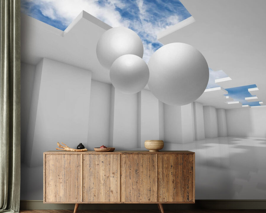 Step into a world that feels like a dream with the “Wall Murals White Room with White Walls and White Balls.” This mural captures that blissful, airy vibe—like walking into a cloud on a perfect day. Imagine sipping your morning coffee while gazing at those playful spheres floating effortlessly above. It’s like the room is saying, “Relax; there’s nothing to worry about.”