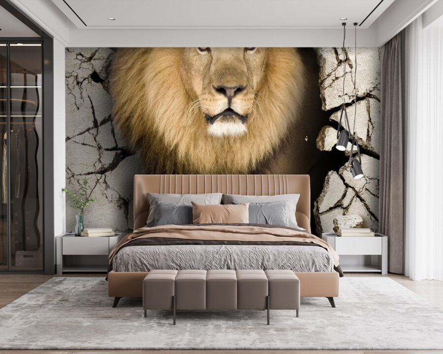 Transform your space with this stunning wall mural—a magnificent lion making a bold entrance. It’s not just a pretty picture; it’s like having a slice of the wild right in your living room. Imagine cozying up on the couch, glancing at this lion striding through a cracked wall, and feeling a rush of adventure. It’s perfect for those who love to mix elegance with a hint of the wild. Plus, you might get a chuckle when guests do a double-take—”Did that lion just come through the wall?” It’s a piece that invites conversation and curiosity, making any room feel alive and dynamic. Perfect for animal lovers or anyone who wants to add an unexpected twist to their decor!