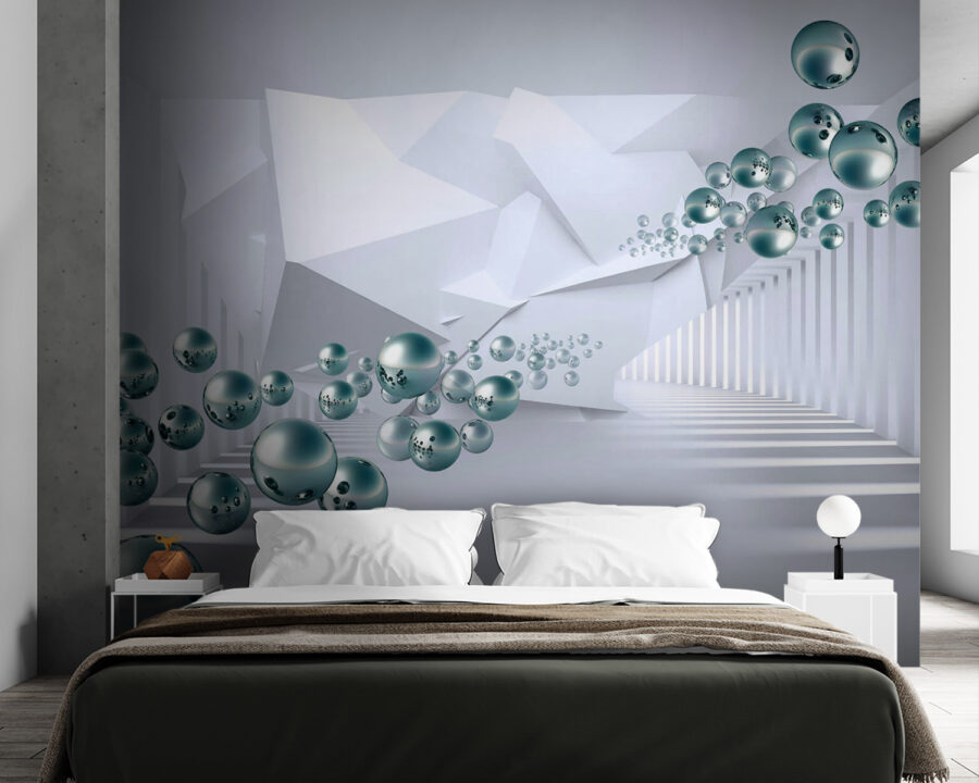 Step into a world of whimsy with this captivating wall mural featuring floating spheres in a sleek, abstract hallway. It’s like stepping into a daydream—one moment you’re in your living room, and the next you’re navigating a cosmic adventure. The playful arrangement of orbs, dancing along the walls, adds depth and intrigue to any space. Imagine hosting friends and watching their eyes light up as they explore the endless possibilities of this dreamy design. It’s the kind of mural that sparks conversations, inspires creativity, and makes even the dullest walls feel like they’re in on the fun. Perfect for those who appreciate a dash of the unexpected in their decor.