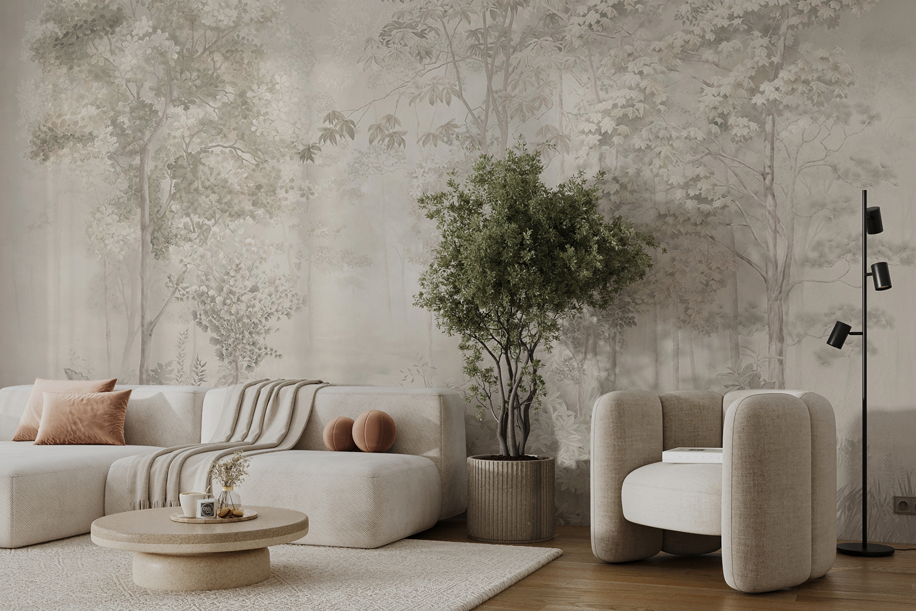 Transform your space into a tranquil getaway with the “Misty Forest with Delicate Foliage” mural. Just picture stepping into a soft, fog-kissed landscape where the trees whisper secrets and the leaves seem to dance. It’s not just a mural; it’s like having a gentle woodland breeze right in your living room. Imagine curling up with a book as the serene vibes wrap around you, transporting you far from city chaos. Plus, the hints of greenery keep things fresh and lively—like a forest spa day, minus the hiking boots. Go ahead, let those calming forest vibes take over!