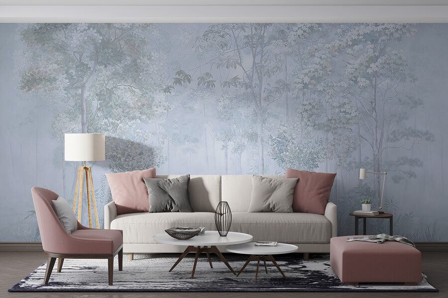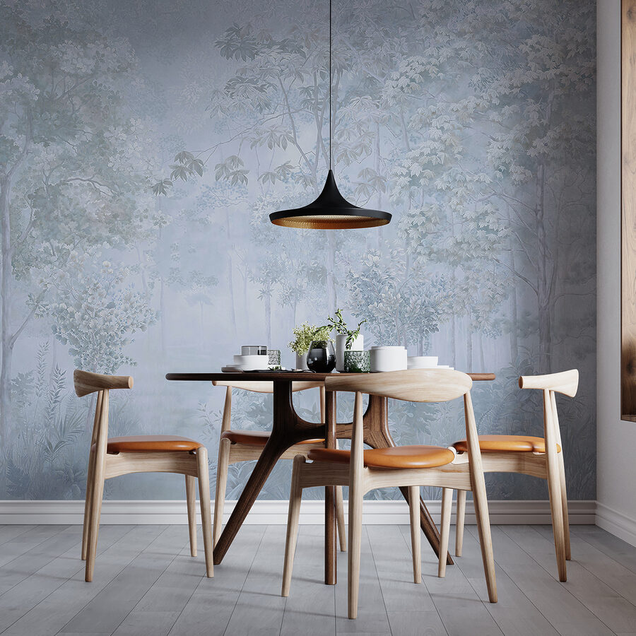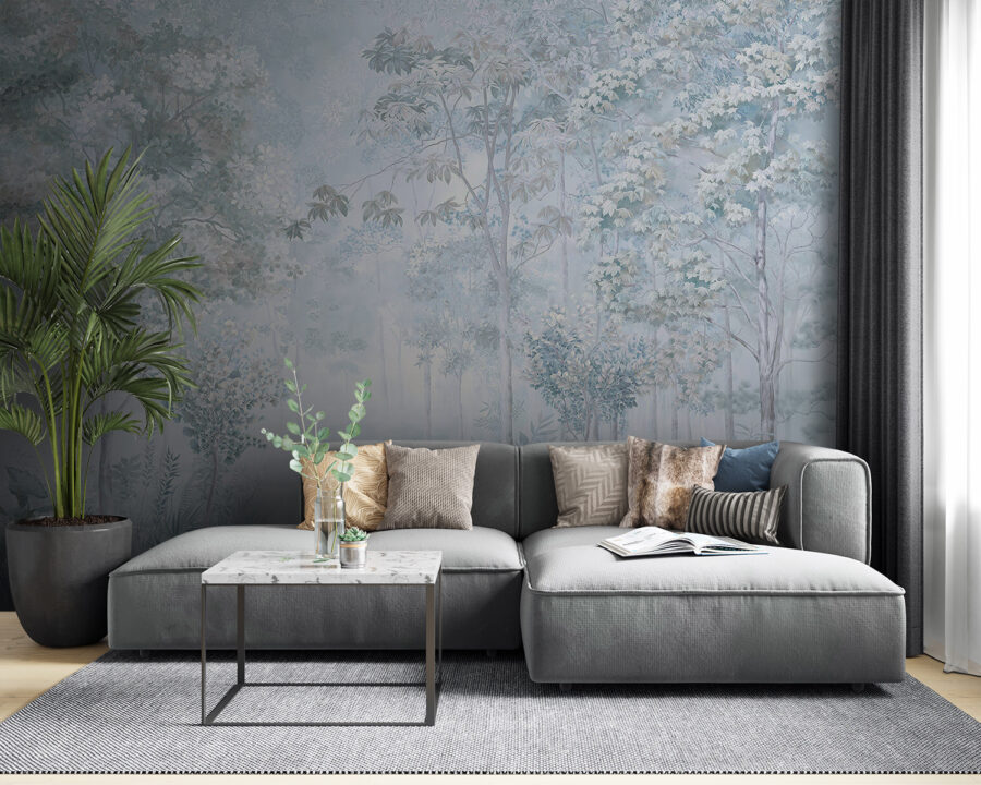 Step into a dreamy escape with this wall mural featuring serene trees and lush plants. It’s like bringing a foggy forest right into your home, where every glance feels like a breath of fresh air. Imagine sipping your coffee while surrounded by peaceful greenery—no hikes required. The soft colors mingle in a way that makes any space feel calm and inviting. Whether it’s your living room or a cozy nook, this mural whispers tranquility. Perfect for those who adore unique decor, it’s a gentle reminder that nature’s beauty can be just a wall away.