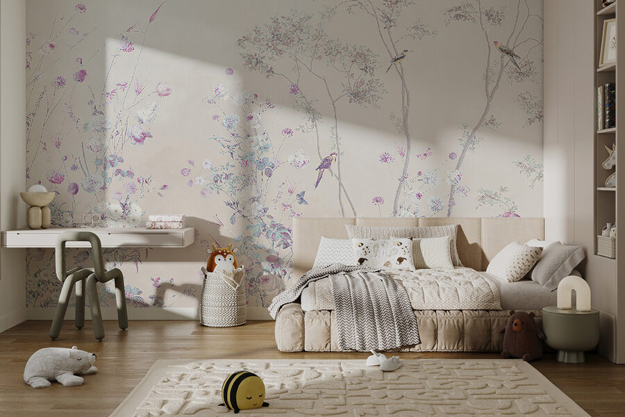 Transform your space into a dreamy escape with this “Pastel Flowers and Birds in Harmony” mural. Imagine walking into a room that feels like a gentle spring morning—soft blooms blush in subtle shades while cheerful birds flit about, as if they just popped over for tea. It’s one of those pieces that invites daydreaming. Picture curling up with a good book, the colors dancing softly in the background, inspiring a cozy atmosphere. This mural doesn’t just decorate; it tells a story of nature’s grace, bringing calm vibes into every corner. Perfect for living rooms, bedrooms, or anywhere that needs a touch of tranquility, this mural is like a warm hug from nature itself—seriously, who could say no to that?