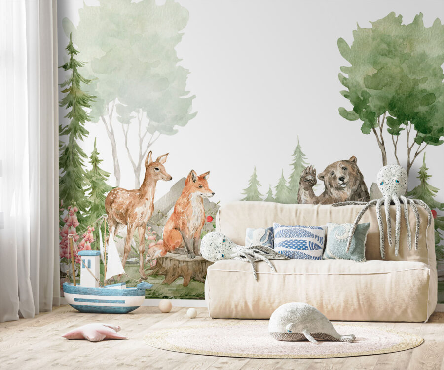 Transform any room into a whimsical woodland wonderland with the “Forest Animals Greeting Each Other Warmly” mural. Imagine a cozy space where a friendly bear waves hello to a curious fox, while a handsome deer and a shy hedgehog join the friendly gathering. This charming mural has a way of sparking joy and conversation, making it perfect for kiddo’s rooms or play areas. Just picture the smiles as little ones drift off to dreamland surrounded by these adorable characters. It’s not just decor; it’s an invitation to adventure and friendship, right on the wall! Plus, it’s a lovely little reminder of nature’s beauty, all while keeping things fun and light. Who wouldn’t want to wake up to such a delightful scene?