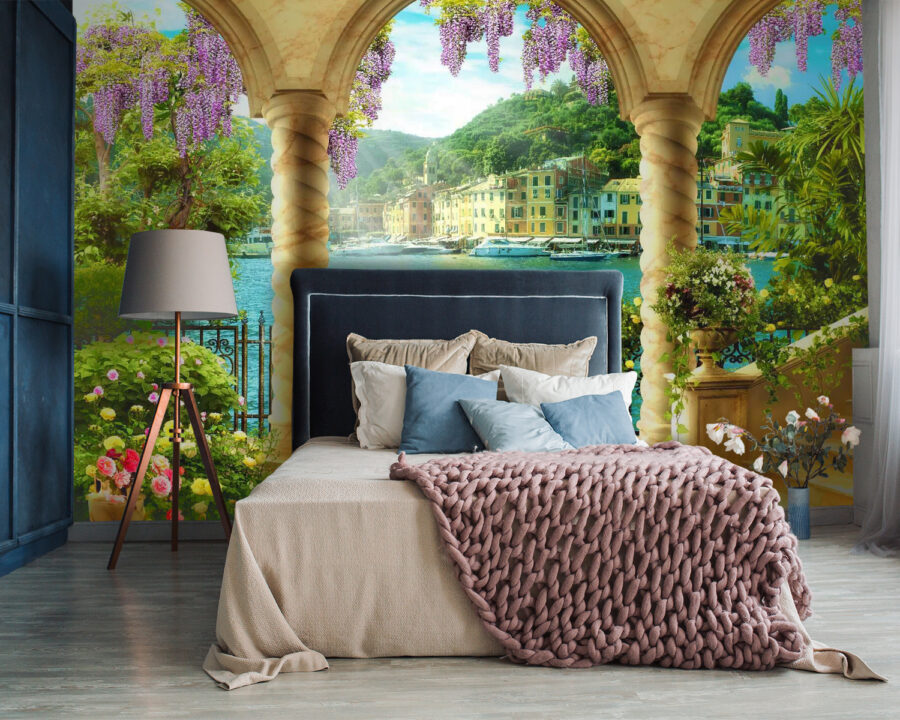 Transform your space with this vibrant wall mural, “Colorful Garden Overlooking the Harbor.” Imagine stepping into a sun-soaked Italian villa every time you walk into the room. Those blooming flowers, cheerful hues, and stunning water views could make anyone smile—even on the dreariest days. It’s like daily therapy, with a splash of whimsy!