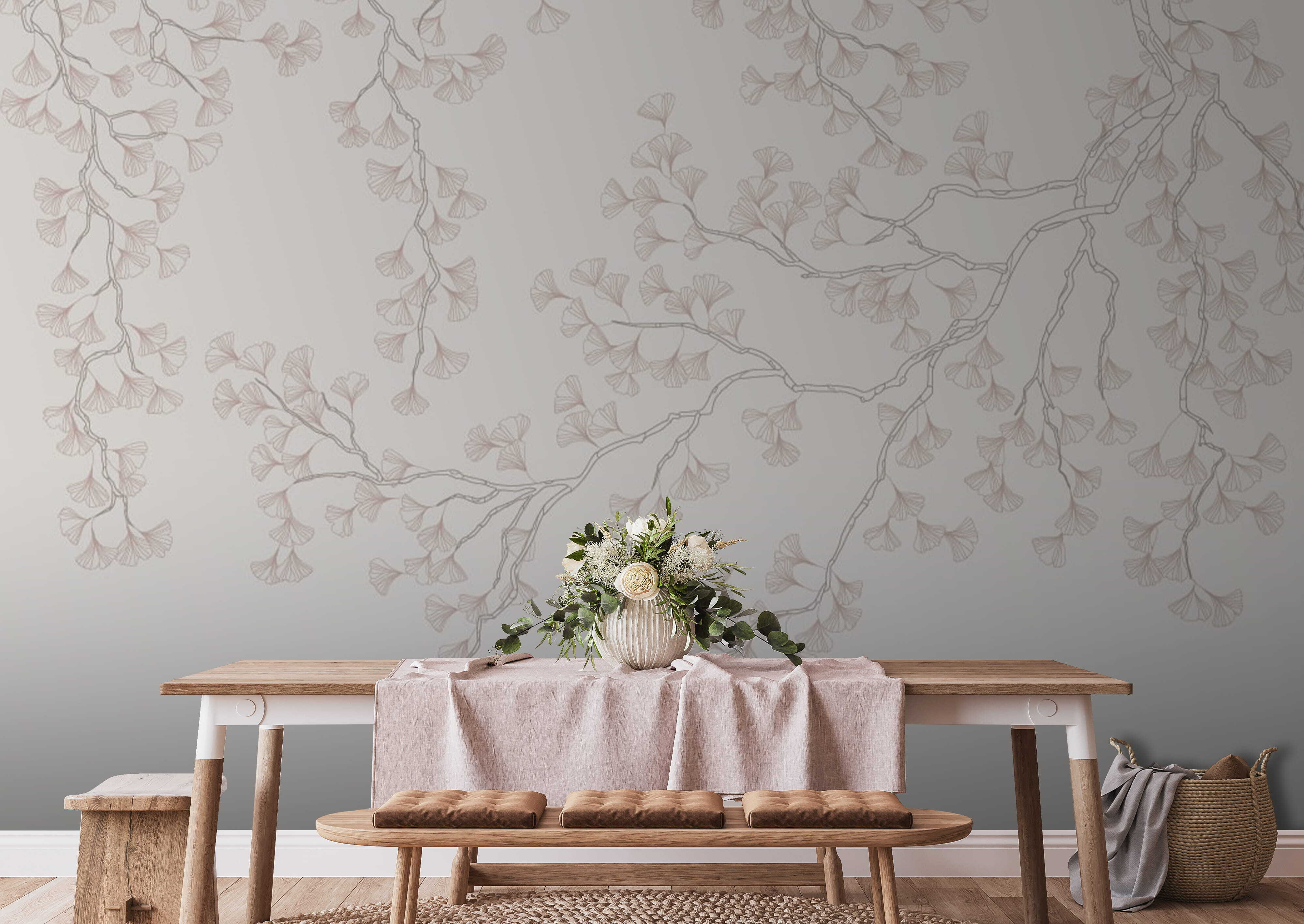 Transform any room into a serene escape with this beautiful “Flowing Pattern of Ginkgo Branches” wall mural. Picture this: gentle ginkgo leaves cascading down in soft hues, bringing a fresh, natural vibe. It’s like having a peaceful garden right in your living space. Ideal for bedrooms, dining areas, or cozy nooks, this mural invites daydreams and warm gatherings.