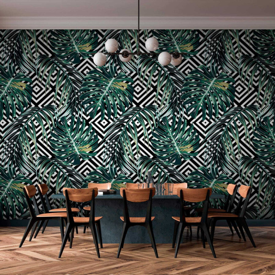 Transform your space into a tropical getaway with the “Wall Murals Pattern of Leaves on a Black and White Background.” It’s like inviting a little slice of nature right into your living room. Imagine sitting on the couch, sipping your coffee, surrounded by lush, green leaves against that striking black-and-white backdrop. You could almost hear the soothing rustle of a breeze, right?