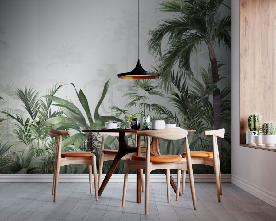 Transform any room into a serene escape with this lush tropical jungle mural. Imagine waking up to misty palms gently swaying, almost inviting you to step into a world where the worries of the day just fade away. The greens are so vibrant, they practically whisper secrets about distant adventures. Perfect for those cozy reading nooks or perhaps that one wall that’s been feeling kinda lonely. It’s more than decor; it’s a vibe! Sounds like a mini-vacation right at home, doesn’t it? So, grab a cup of your favorite brew, kick back, and let the jungle take you away, even if it’s just for a moment.