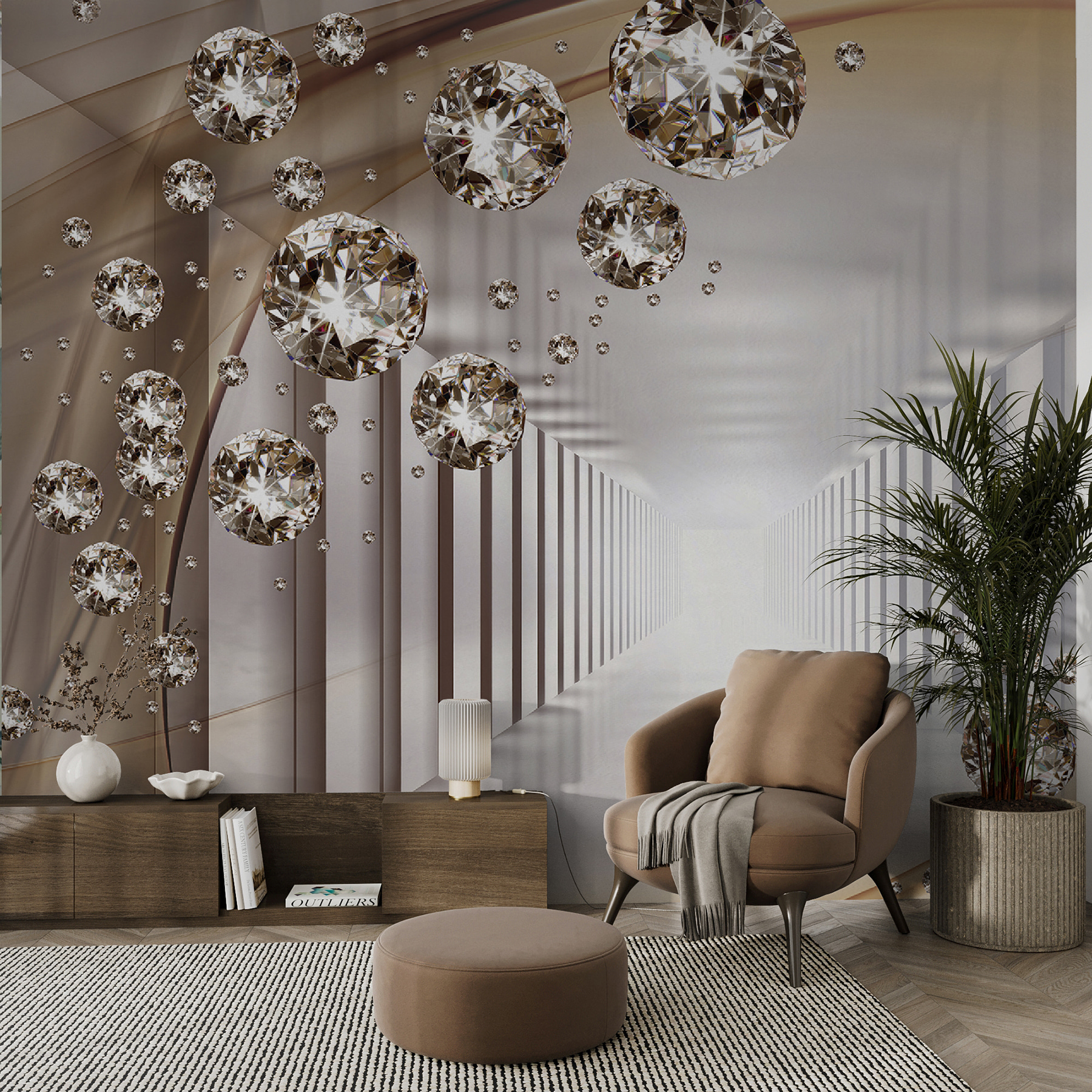 Transform any room into a whimsical wonderland with this captivating mural of gems floating in a seemingly endless tunnel. Just picture it—you walk in, and boom, your walls are alive, with mesmerizing patterns pulling you into a magical space! It’s like stepping into a surreal adventure every day. The soft hues and playful design invite warmth and creativity, turning even the dullest corner into something special. Friends will admire your new decor, and who knows, it might spark a deep conversation about dreams and the universe. Simple, yet striking—how could anyone resist?