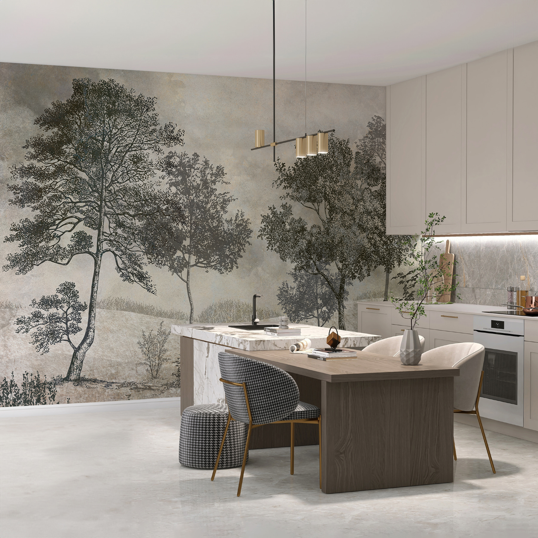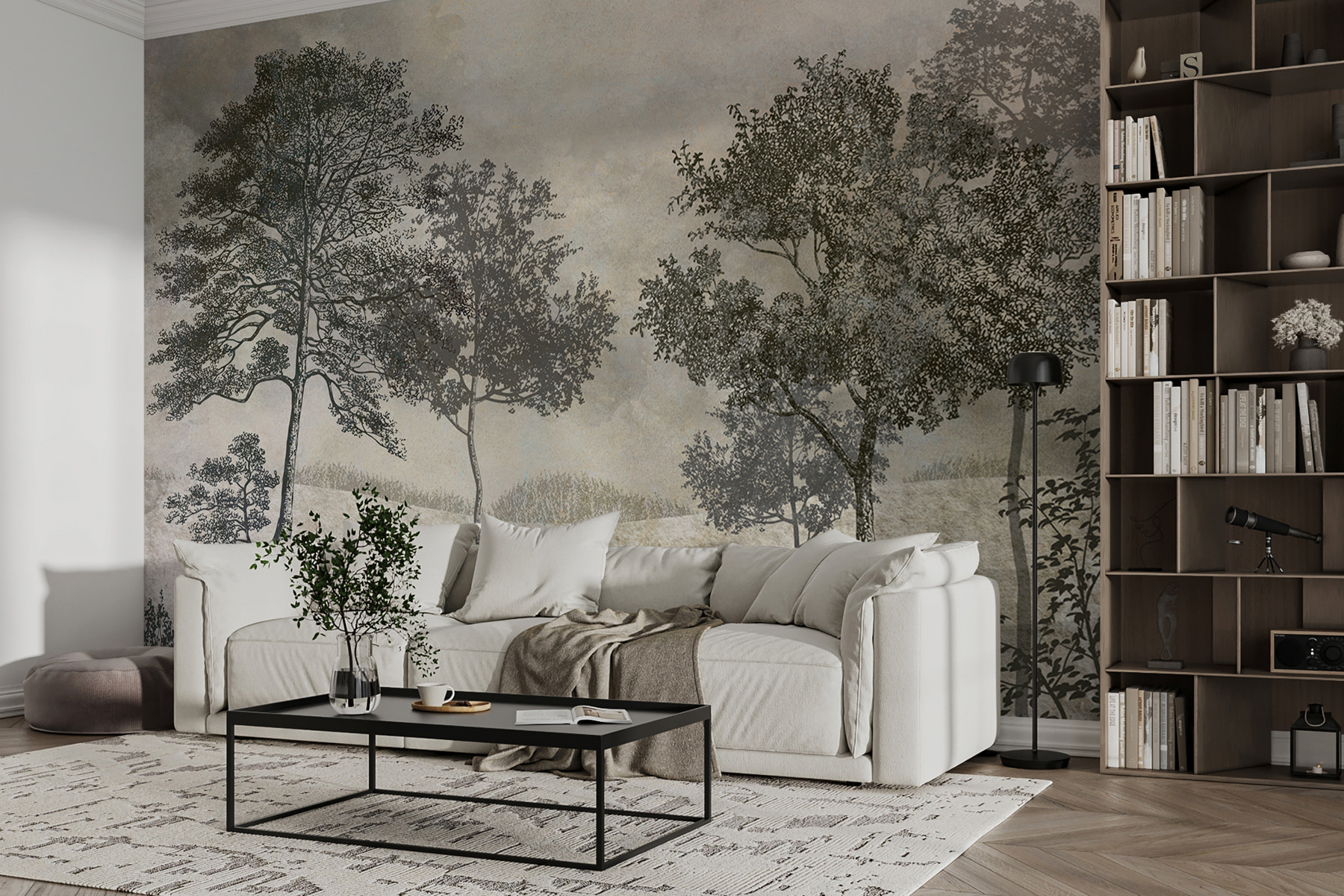 Transform your space with the “Etched Trees in Serene Landscape” mural, a delightful blend of nature and artistry. Picture this: a cozy corner where light filters through leaves, creating a dance of shadows. These understated, elegant trees seem to whisper stories of tranquility and calm. Perfect for a quiet reading nook or a chic living room, they’ll make you feel like you’re stepping into your own private forest. Plus, who doesn’t love a good nature vibe? It’s like bringing the great outdoors in without the bugs. Just imagine curling up with a book surrounded by this peaceful view—it’s blissful! Perfect for anyone looking to add a touch of natural chic to their walls.