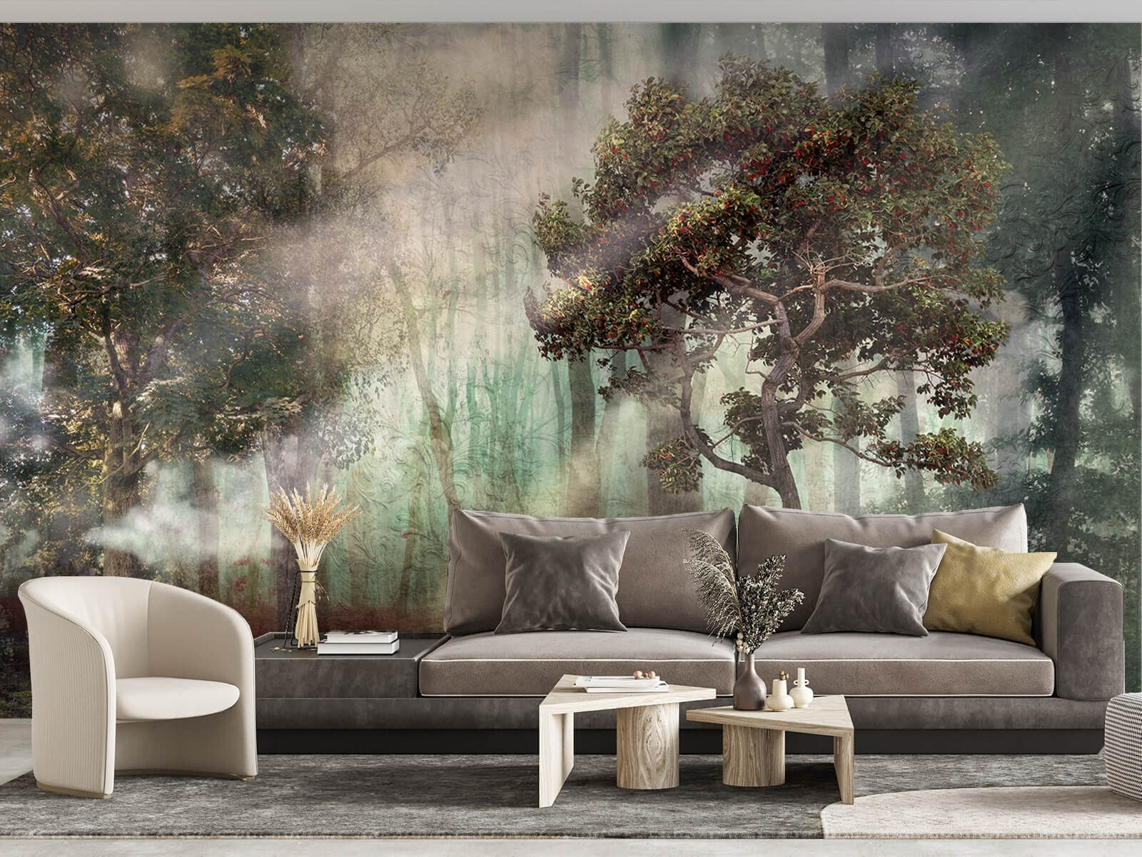 Step into a dreamy escape with the “Foggy Forest with Trees and Fog” mural. Imagine transforming a plain wall into a serene portal where lush greenery meets a cozy haze. It’s like bringing a piece of nature right into your living space, minus the mosquito bites! This mural whispers calm vibes, perfect for a reading nook or that empty wall in need of personality. Picture sipping coffee while gazing at this tranquil scene—suddenly you’ve got your own woodland retreat. It’s got a touch of mystery, too, like what secrets those trees might hold. Perfect for anyone wanting a splash of nature indoors!