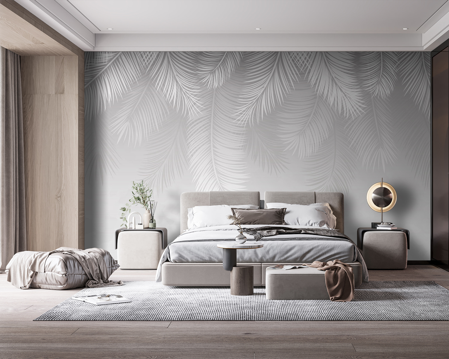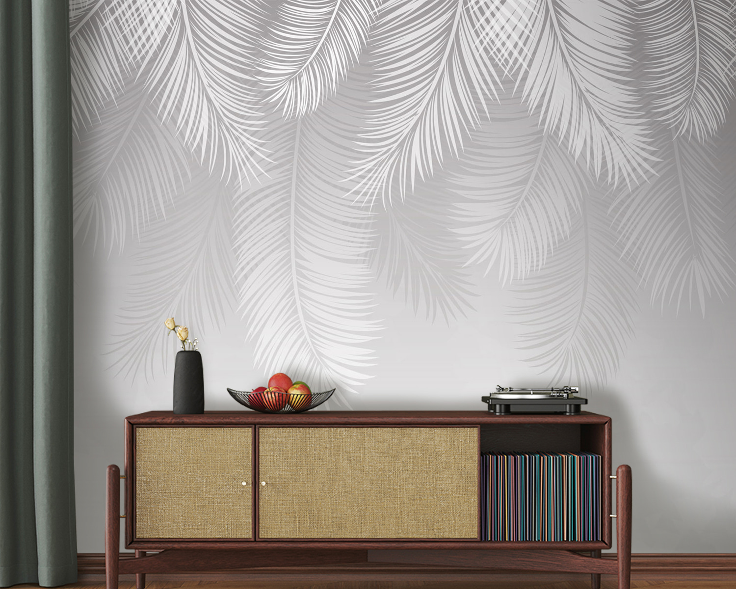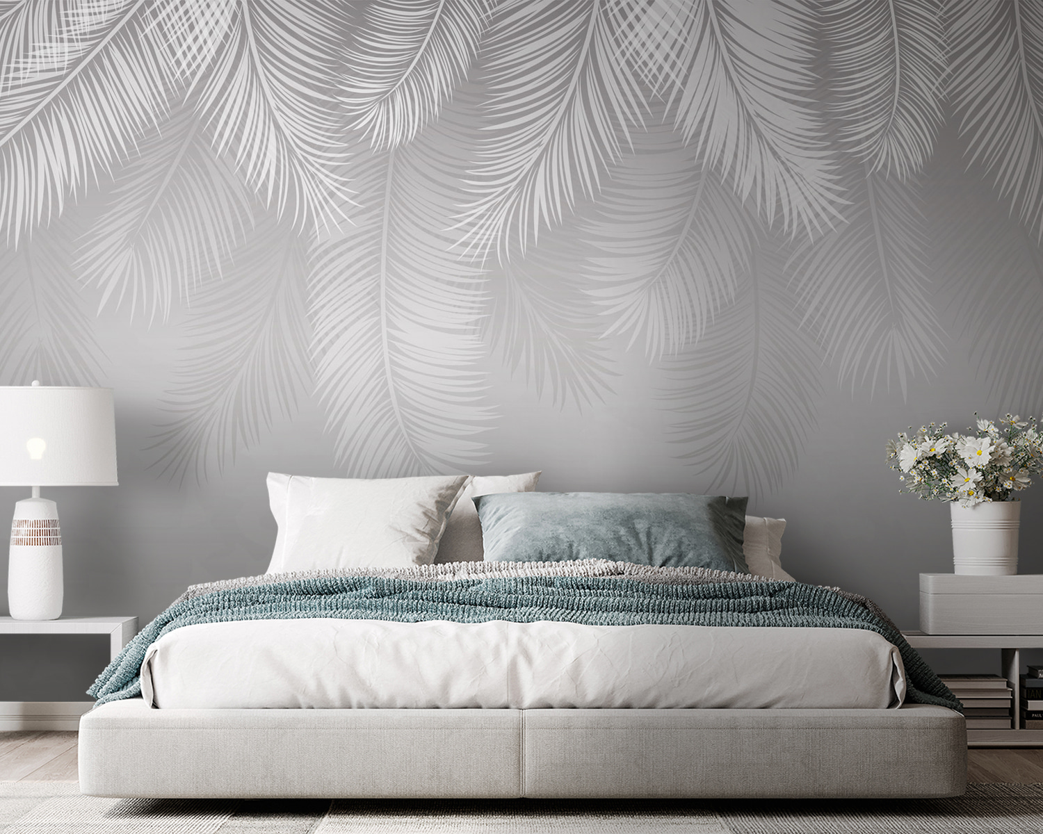 Transform your walls into a serene escape with this stunning mural featuring elegant palm leaves. Imagine stepping into a sun-soaked oasis right in your living room—cool breezes and gentle rustling leaves included (well, sort of). The soft, sophisticated silhouette against a calming background adds a touch of nature’s beauty without being too in-your-face. It’s perfect for creating a relaxing vibe, whether you’re sipping coffee or diving into a good book. Plus, those leaves look like they could almost wave hello! It’s a breath of fresh air that’ll have you daydreaming of tropical getaways. Perfect for nature lovers wanting a bit of paradise at home!