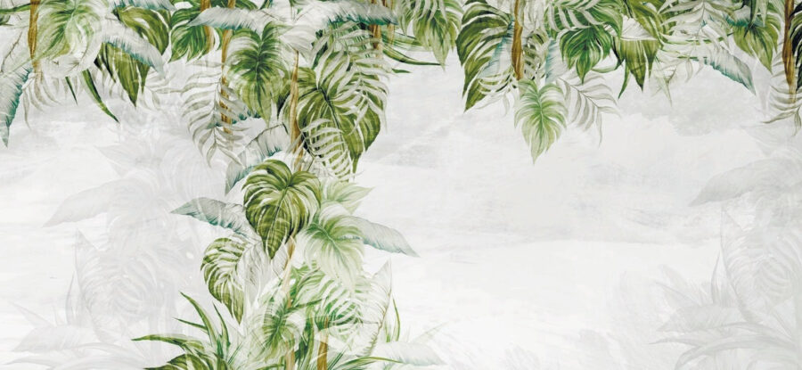 Transform any wall into a mini tropical paradise with this stunning mural featuring lush leaves on a soft background. Imagine walking into a space that instantly feels like a breezy getaway, instantly lifting spirits. It’s all about those refreshing vibes, right? Picture relaxing with a book while surrounded by nature’s artistry—no bugs, no sunscreen required! The soothing greens and gentle patterns create a serene atmosphere, making it perfect for living rooms or cozy reading nooks. A splash of nature without the watering can—what’s not to love? Bring the outdoors in, and let your walls breathe!