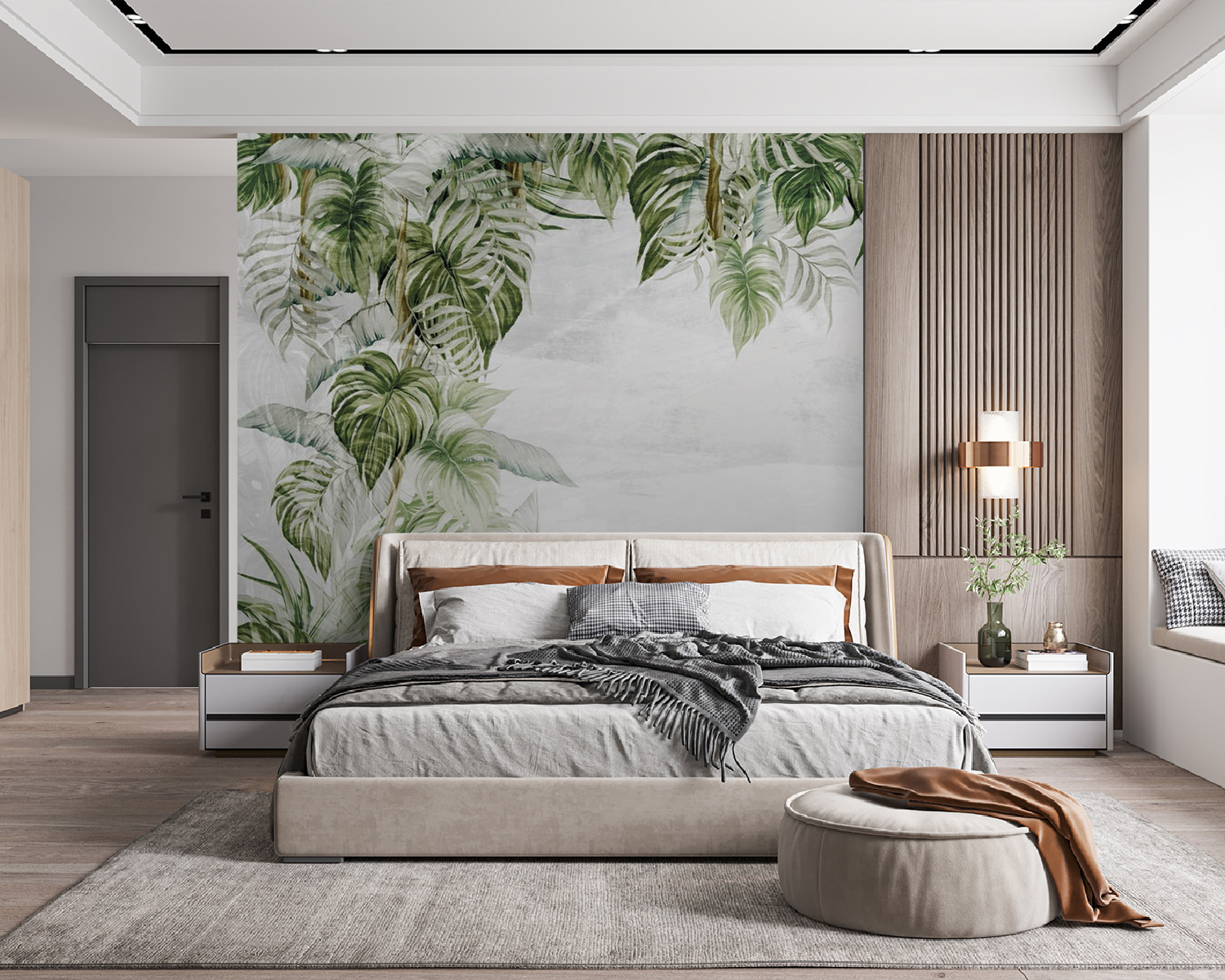Transform any wall into a mini tropical paradise with this stunning mural featuring lush leaves on a soft background. Imagine walking into a space that instantly feels like a breezy getaway, instantly lifting spirits. It’s all about those refreshing vibes, right? Picture relaxing with a book while surrounded by nature’s artistry—no bugs, no sunscreen required! The soothing greens and gentle patterns create a serene atmosphere, making it perfect for living rooms or cozy reading nooks. A splash of nature without the watering can—what’s not to love? Bring the outdoors in, and let your walls breathe!