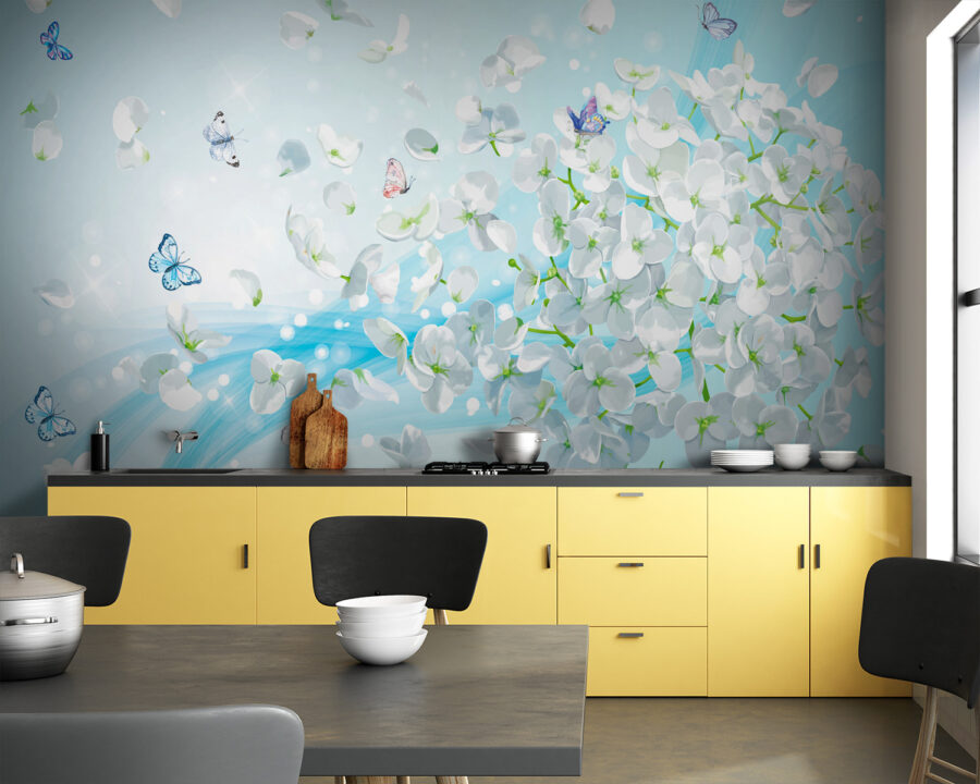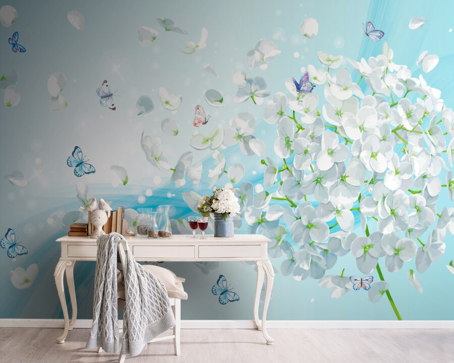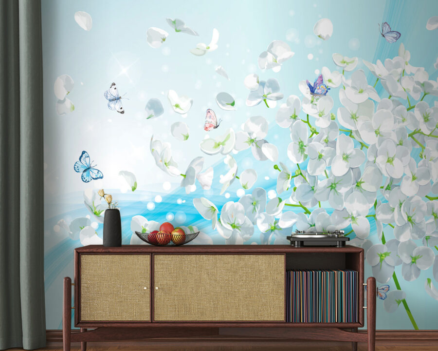 Transform any room with the enchanting “Wall Murals White Flowers with Butterflies Flying.” Imagine stepping into a serene garden, where delicate blossoms dance and butterflies flutter through the air—a little slice of nature right at home. The gentle colors bring a calming vibe, perfect for a cozy reading nook or a lively living room. It’s like fresh spring air! But hey, don’t worry about watering these flowers; they’re the low-maintenance kind! Whether you’re hosting friends or enjoying a quiet moment, this mural adds a touch of elegance and whimsy. Just picture it: butterflies whispering sweet nothings, and you sipping coffee, feeling like you’re in a dreamy bliss. It’s more than decor; it’s an experience!