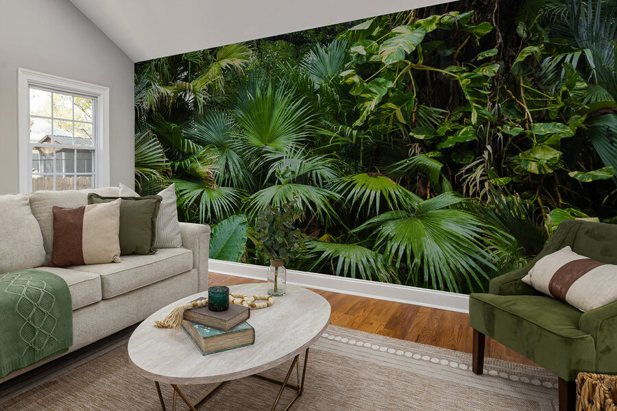 Transform any room into a serene escape with this stunning wall mural, “Lush Tropical Forest Greenery Scene.” Imagine stepping into a vibrant jungle right from your living space. The lush greens and abundant foliage transport you straight to a hidden paradise.